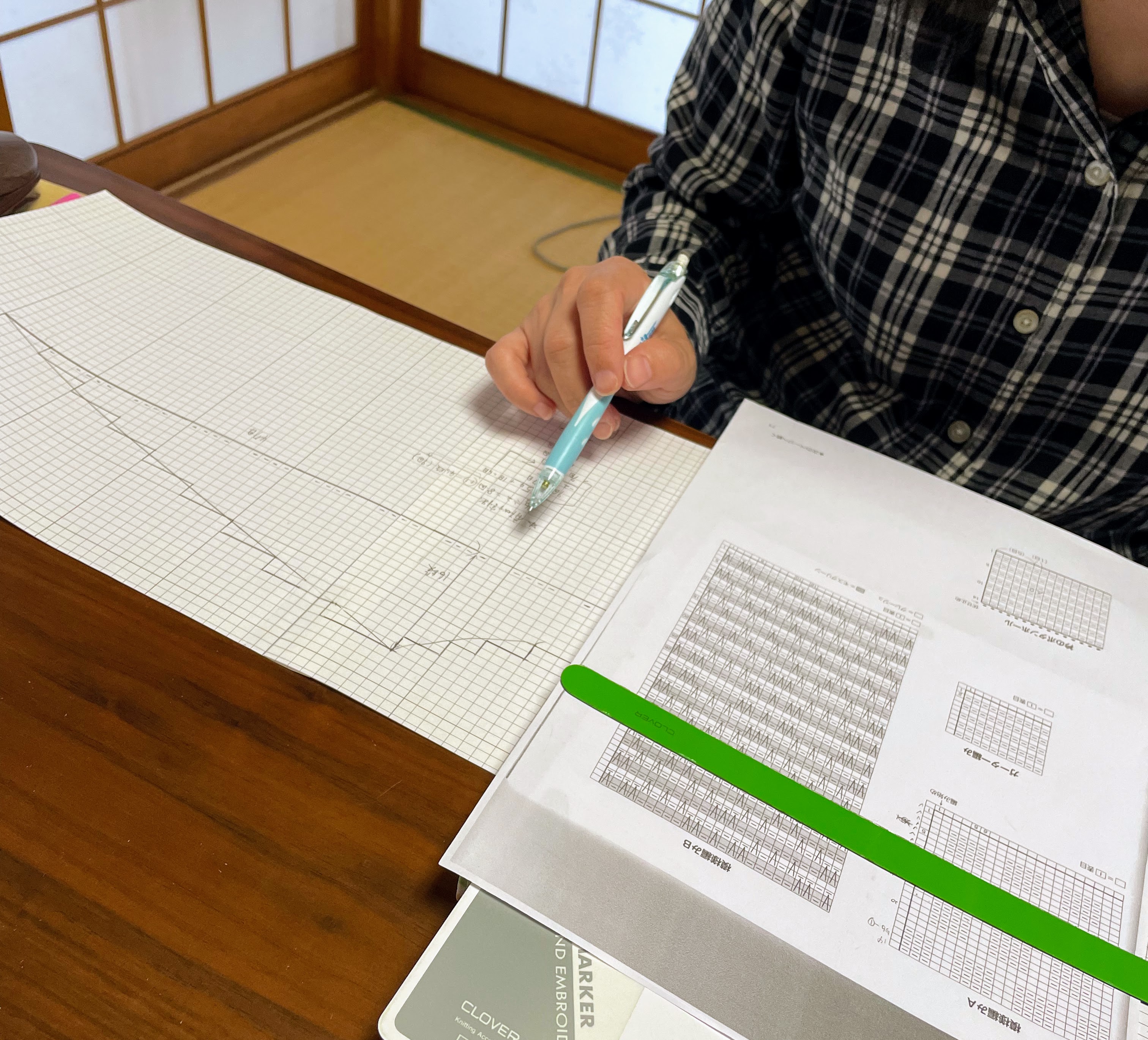 先に編み方図を描いておけば、それに沿って編めますもんね