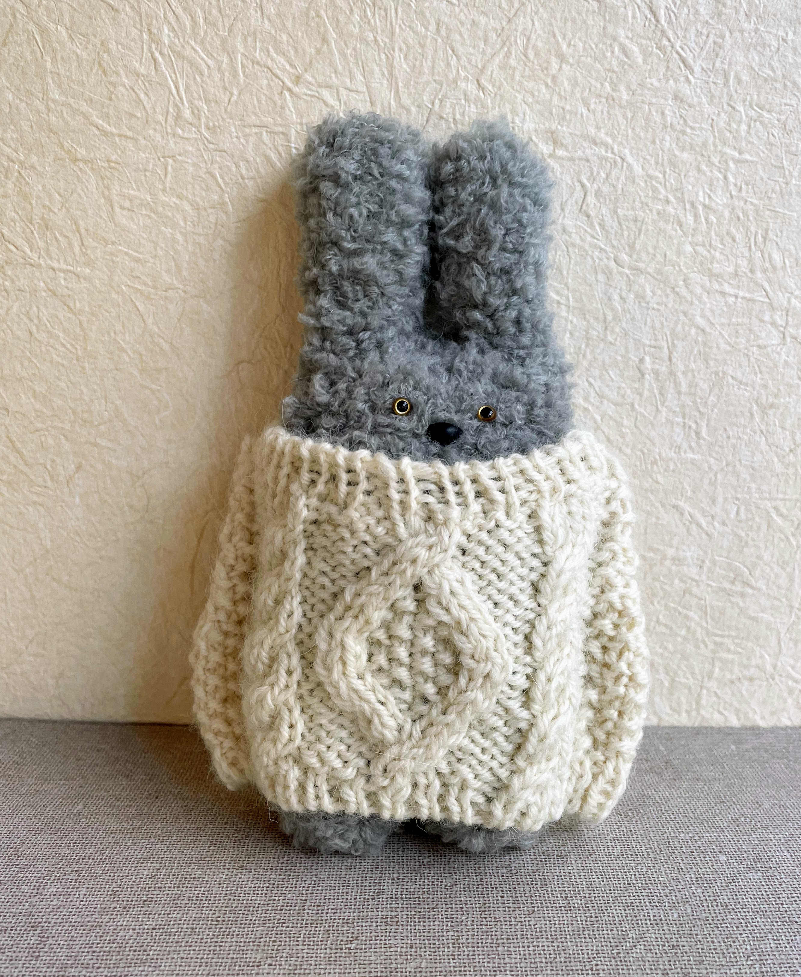 モフノスケにアラン模様のセーターを編みましたemoji