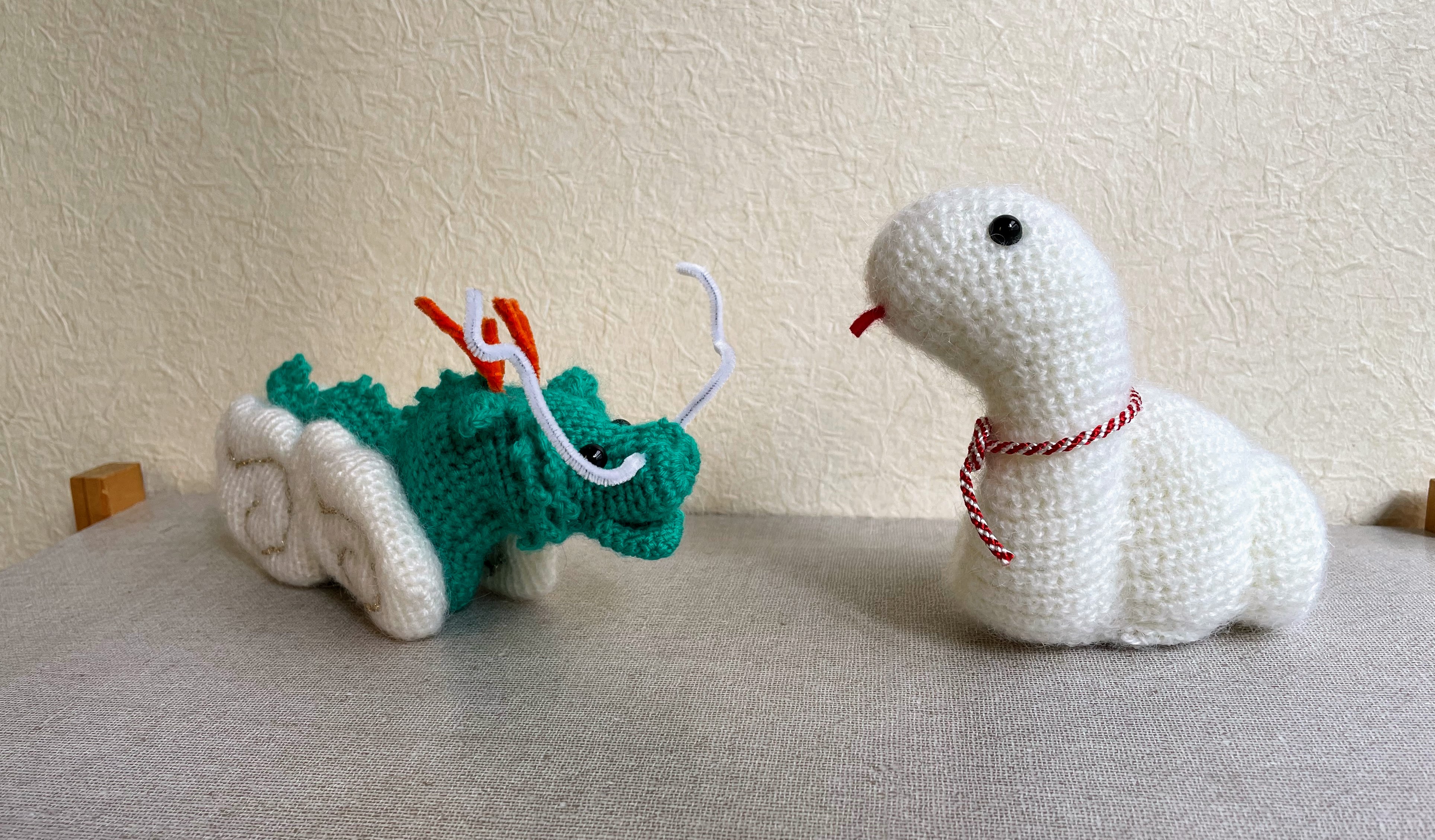 今回のへび(巳以子)はハマナカさんの干支キット「くるくる福へび」です