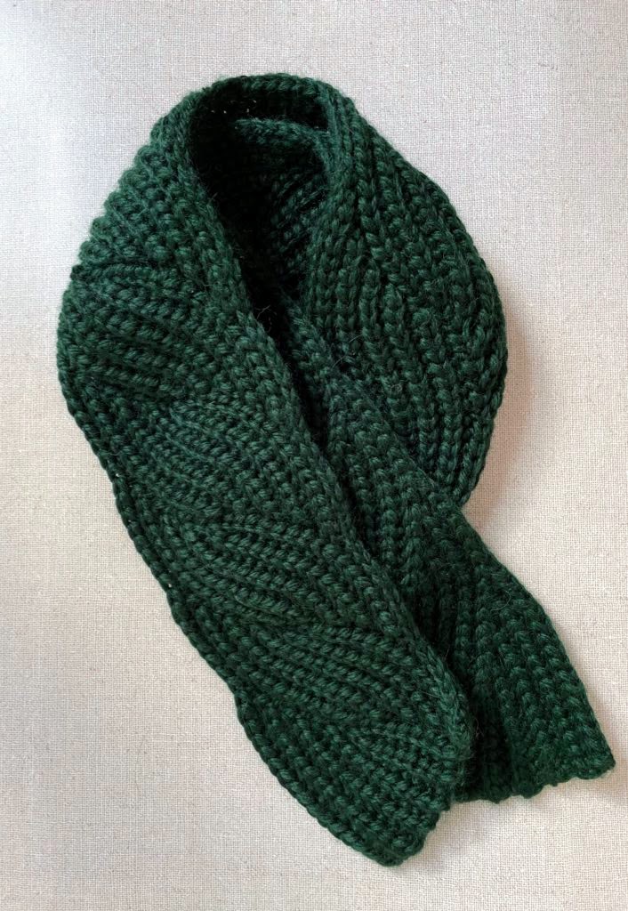 かぎあみDiary さんの ツイストリーフステッチのマフラー を編んでみましたー