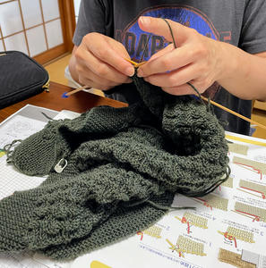 日本手芸普及協会<棒針編み入門科>の最終課題のヴェストに取り組んでいらっしゃるお方が