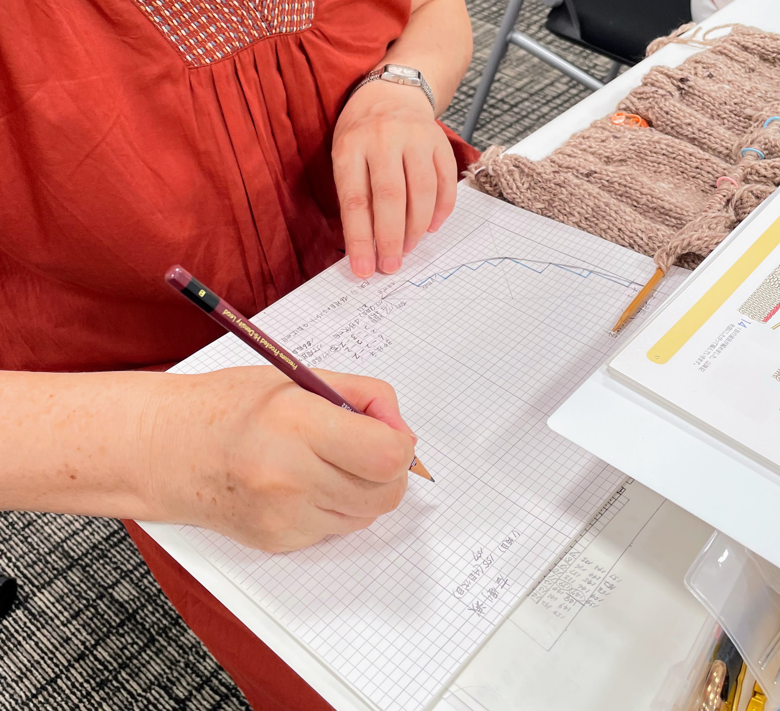 この日は後ろ衿ぐりの減目に取り組んでいただきました。