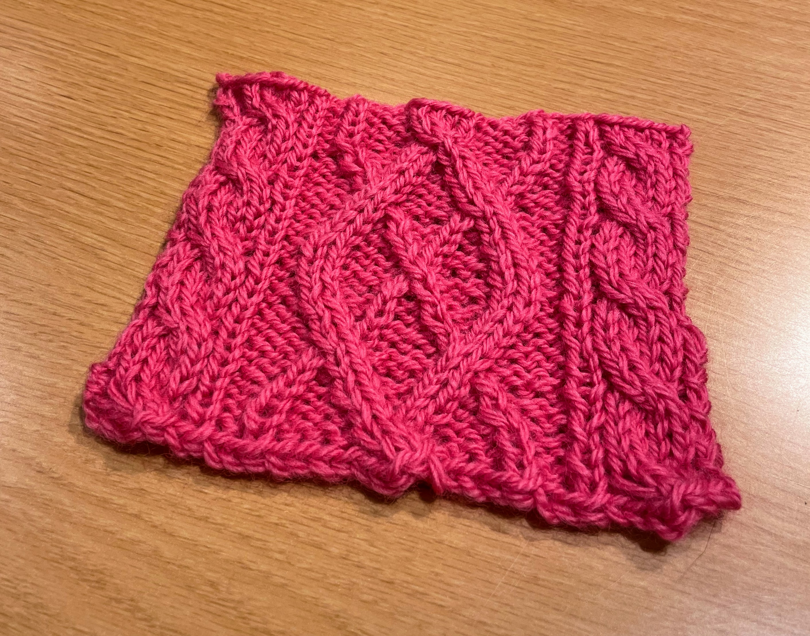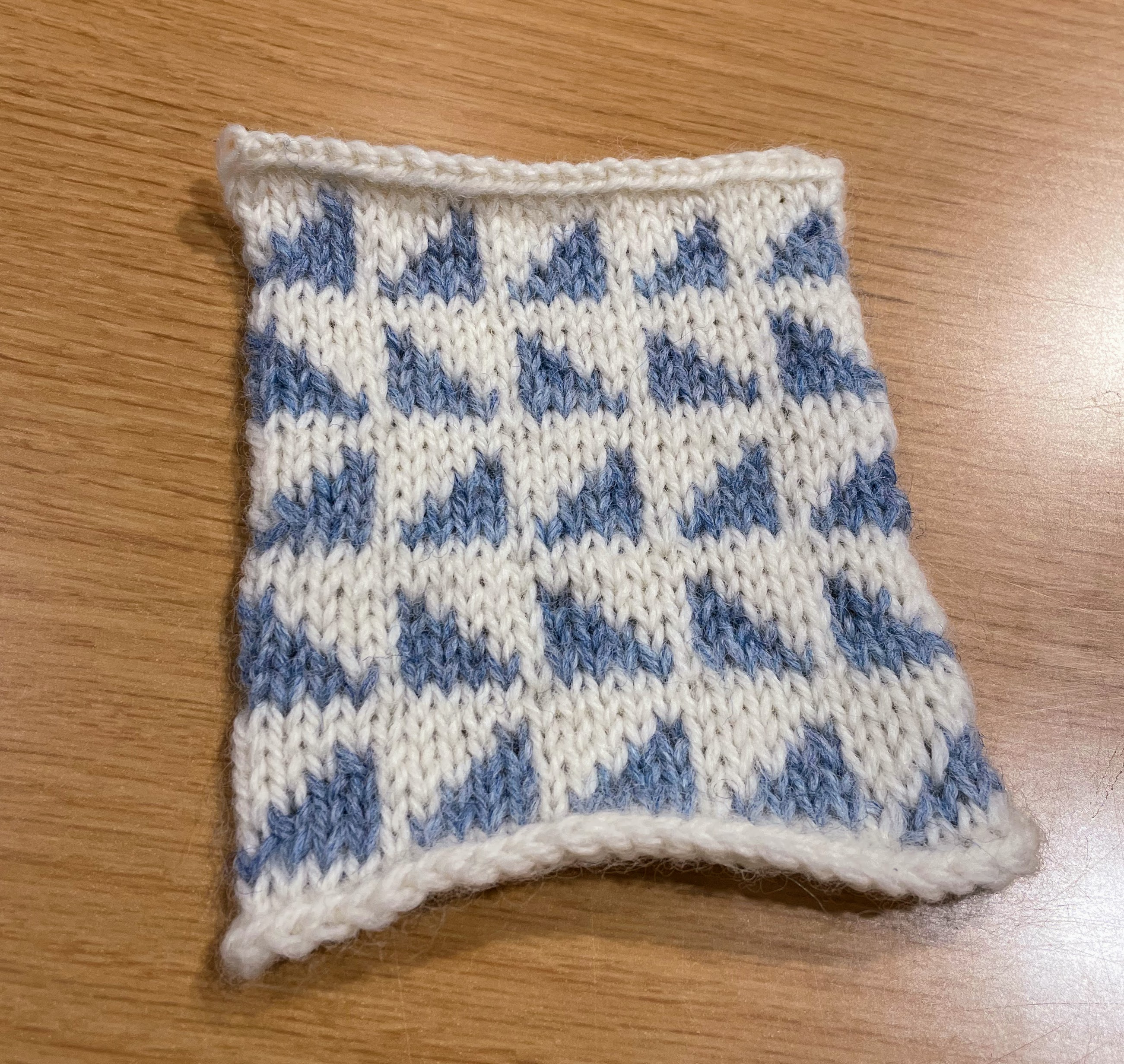 その後は小物課題の交差模様のハンドウォーマーに