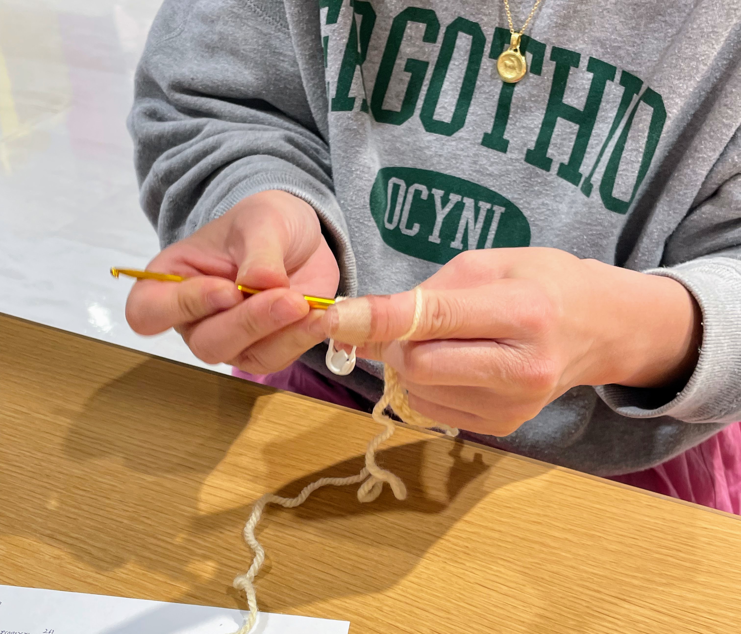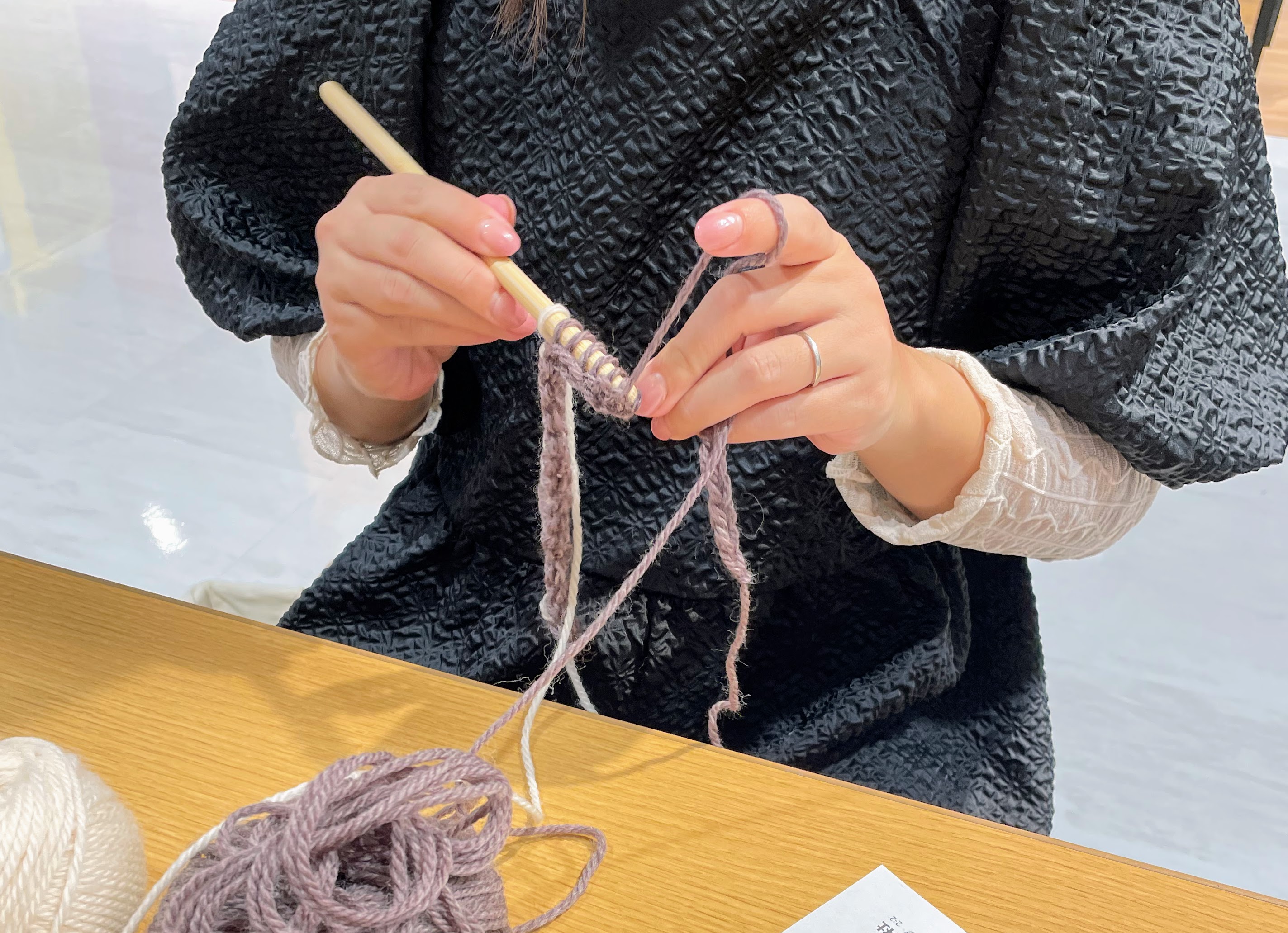 まずは糸の掛け方からはじめて、鎖編みの練習をしていただき、