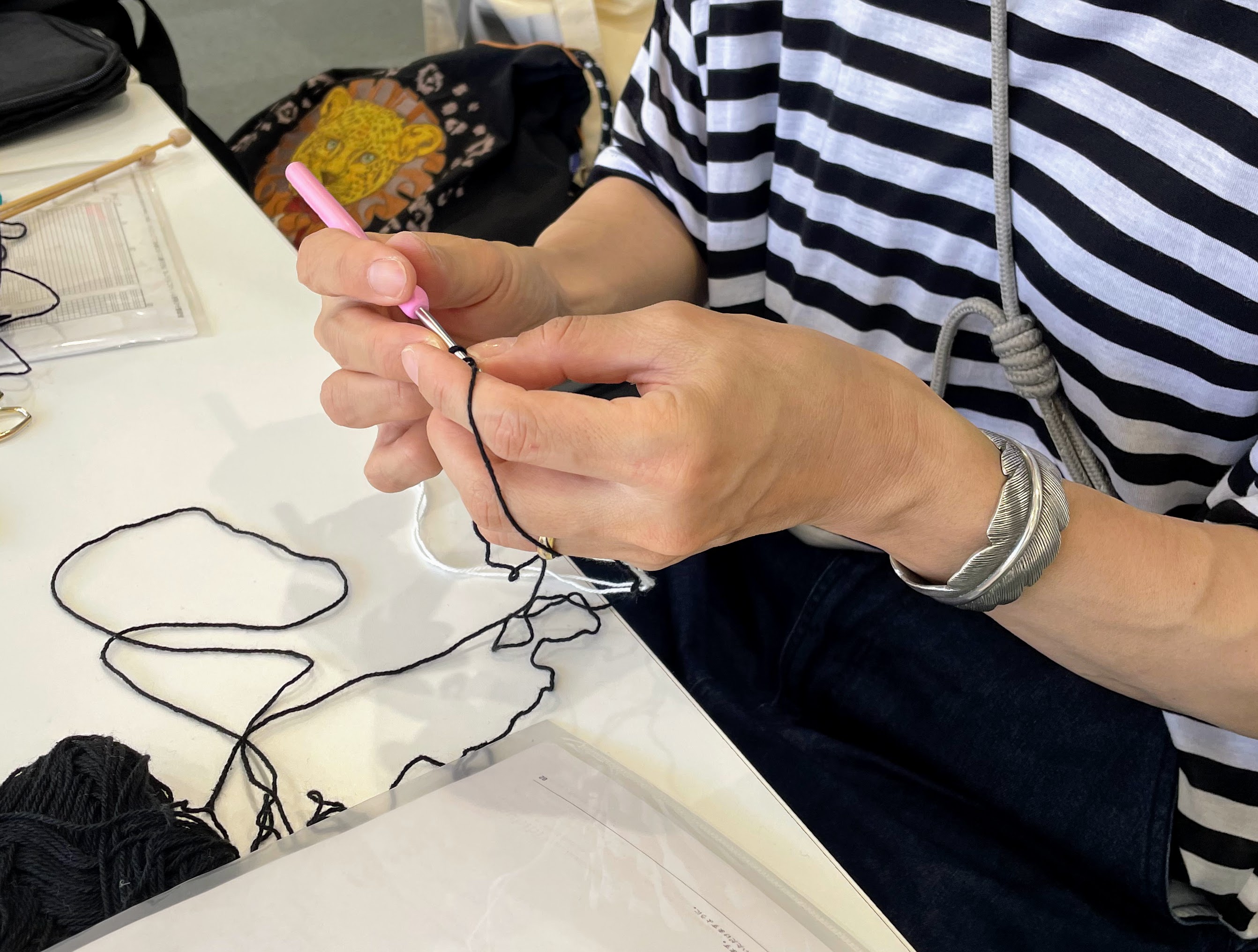 その後、実際に編み進めていただきました