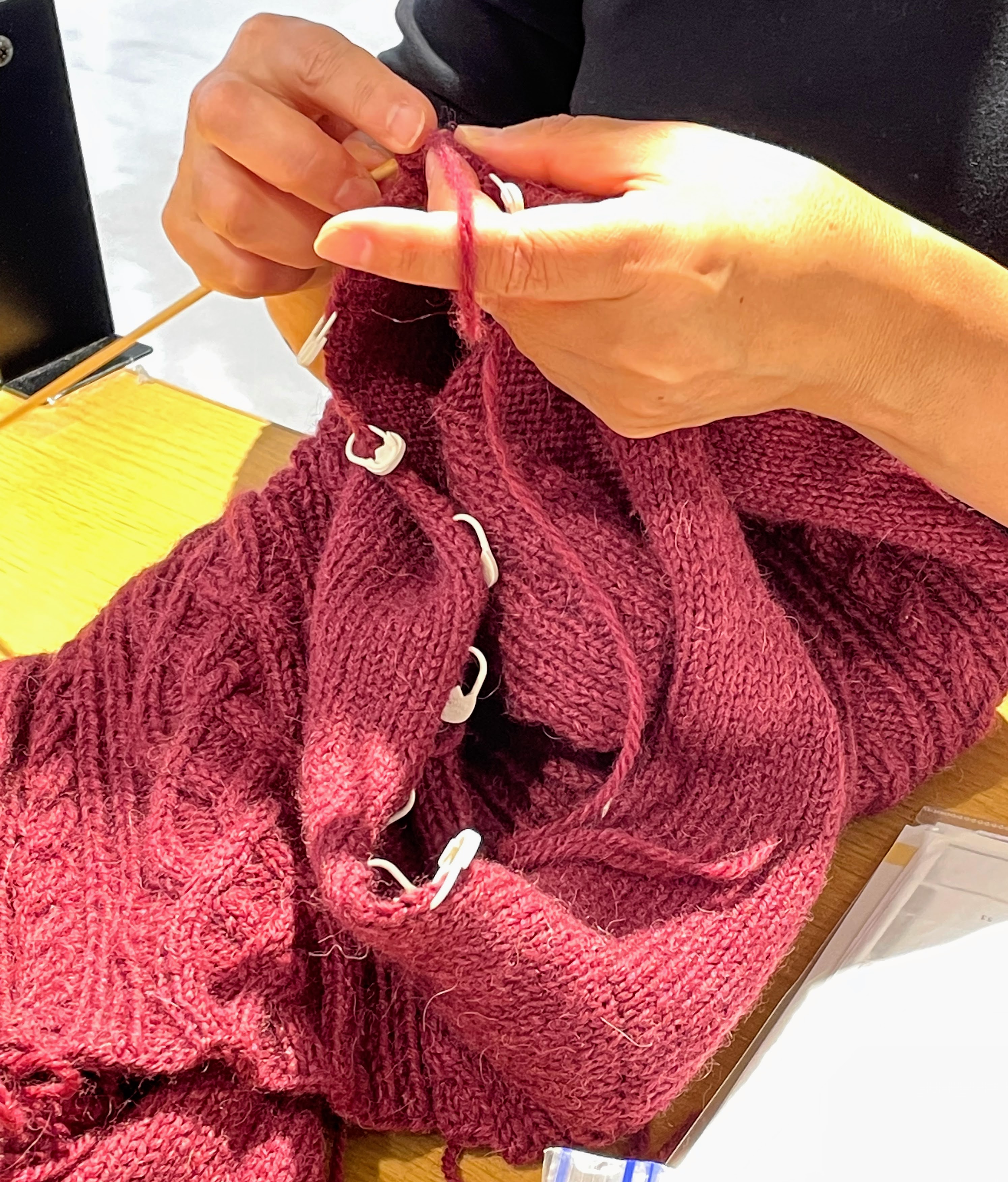(編み間違い発見。やり直すべく、ほどいていらっしゃいます