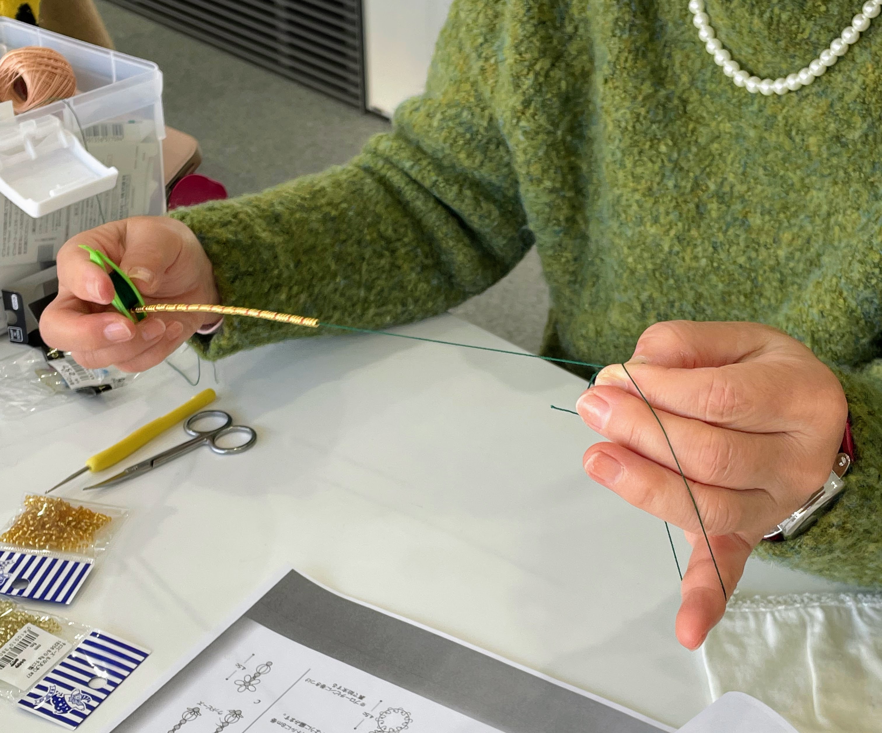 ビーズを入れる際にシャトルからその都度移動させていたそうで。
