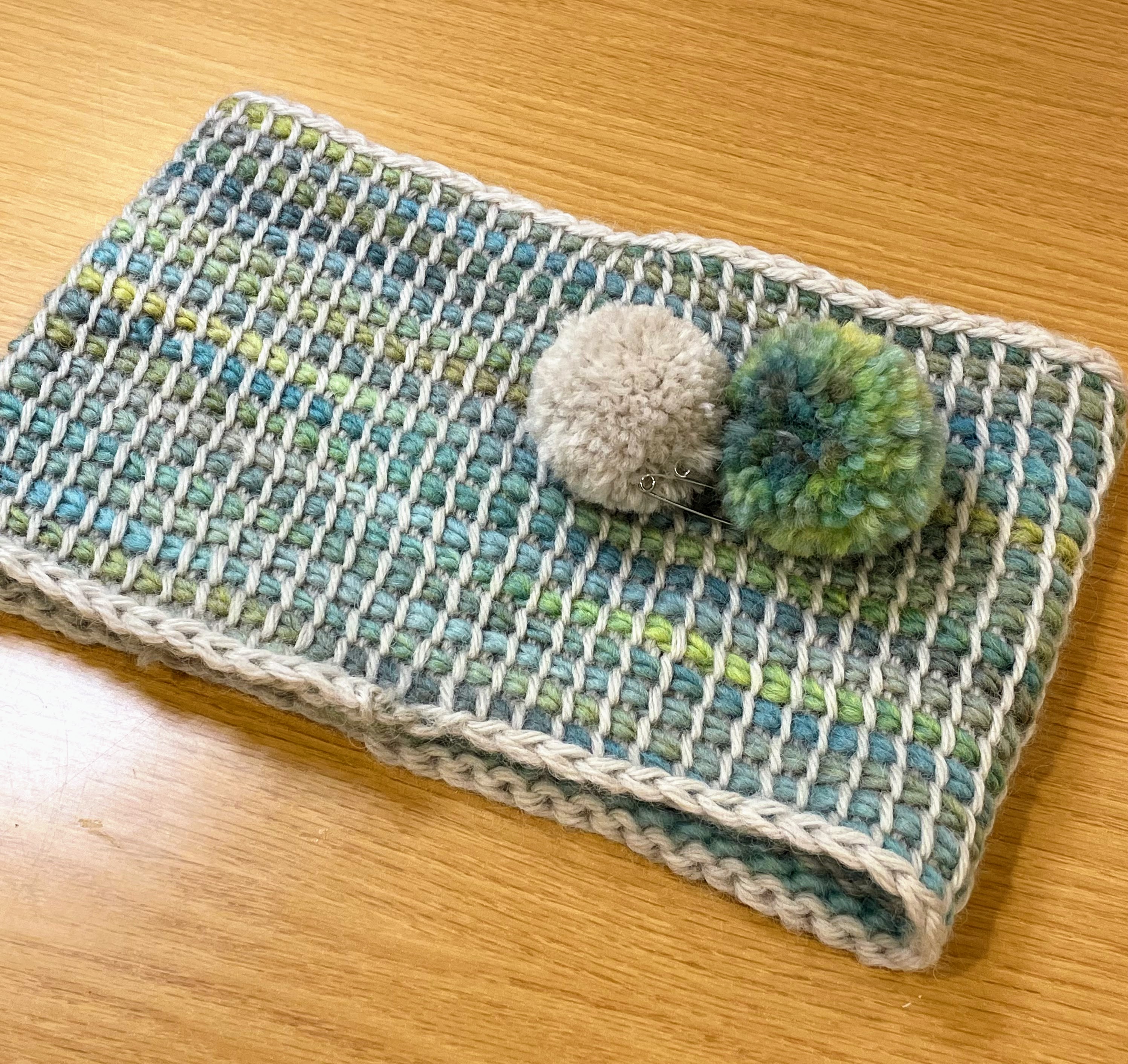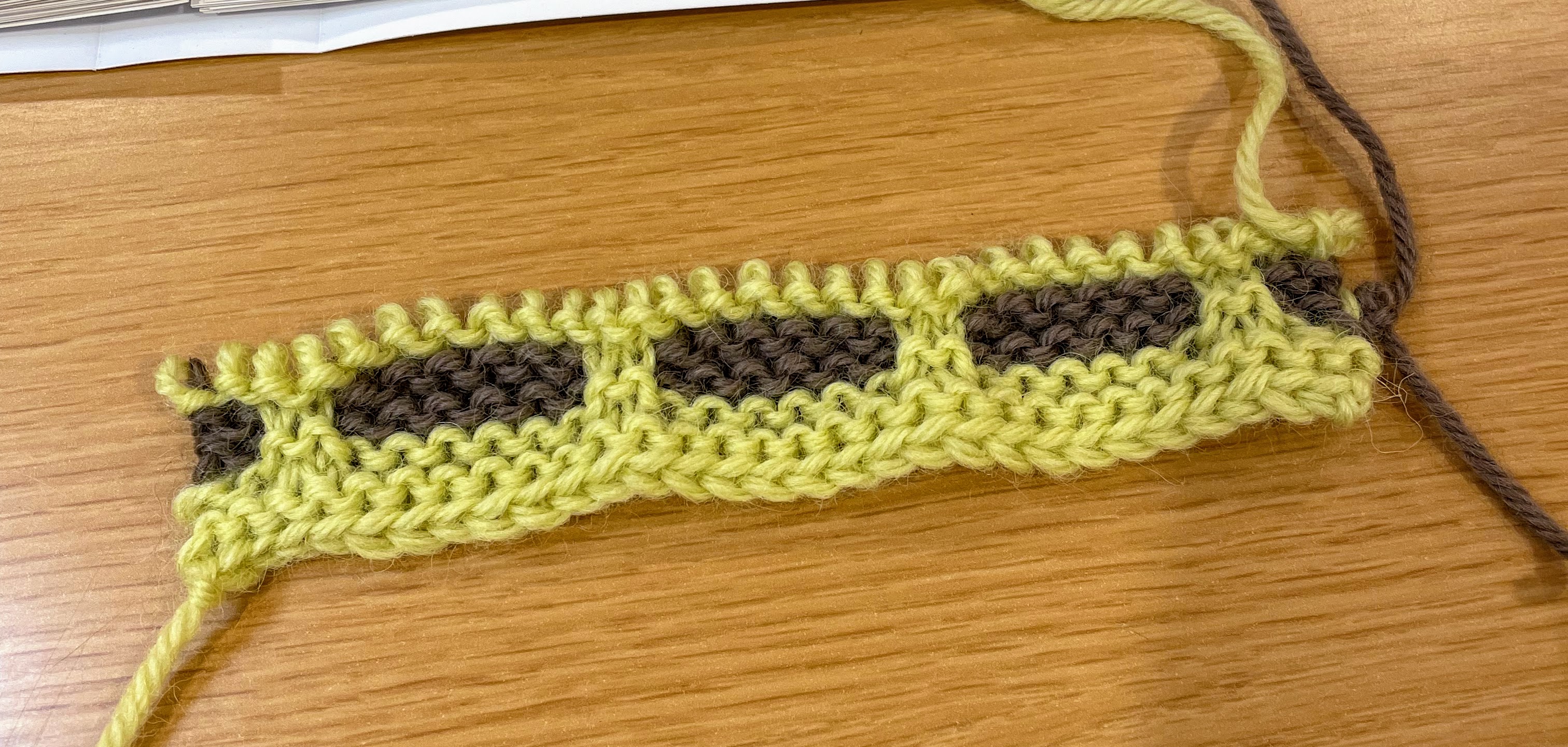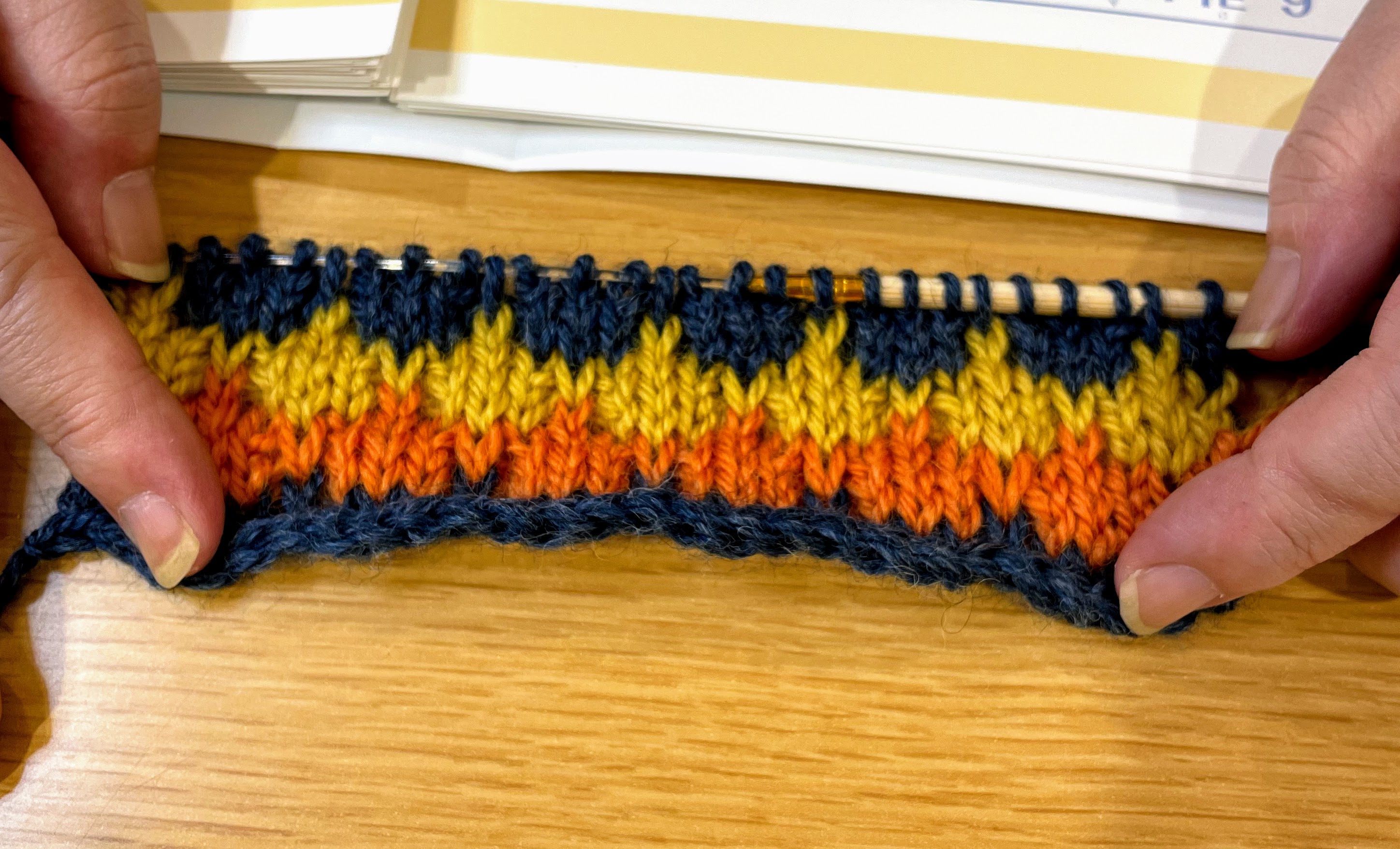 そうすると、一針ごとにやや厚みのある生地を突き通して編まないといけないんですね。
