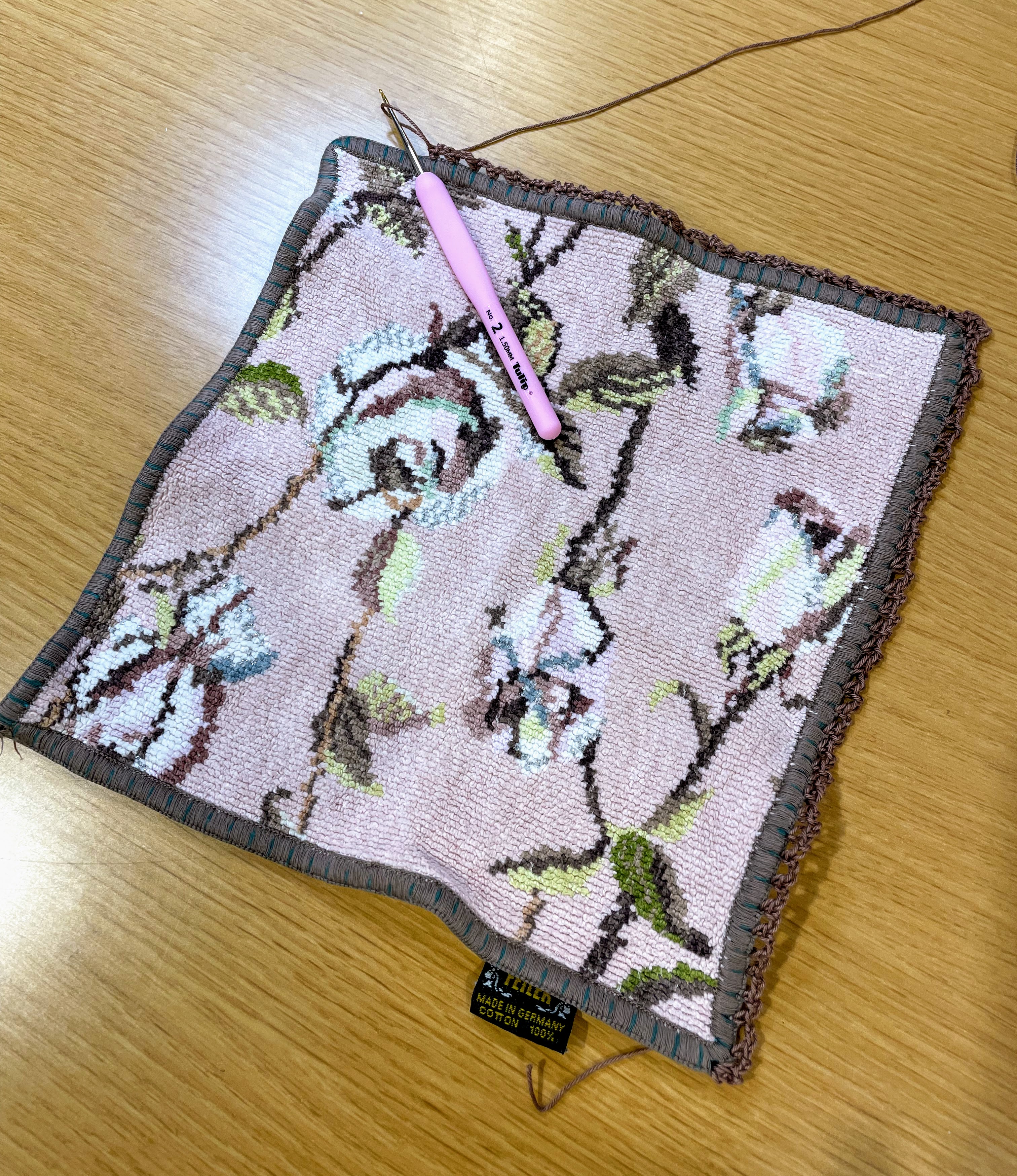フェイラーのタオルハンカチに縁編み(エジング)したものに目が留まり(結構あるそうです)、