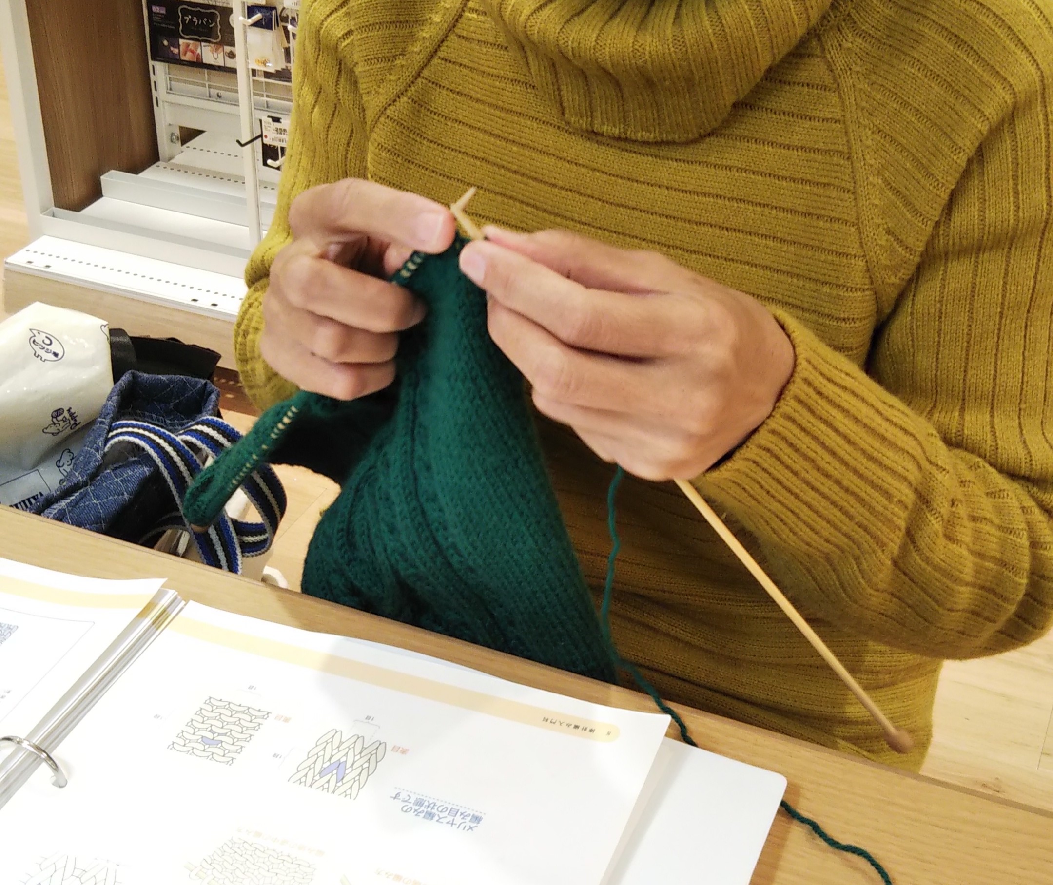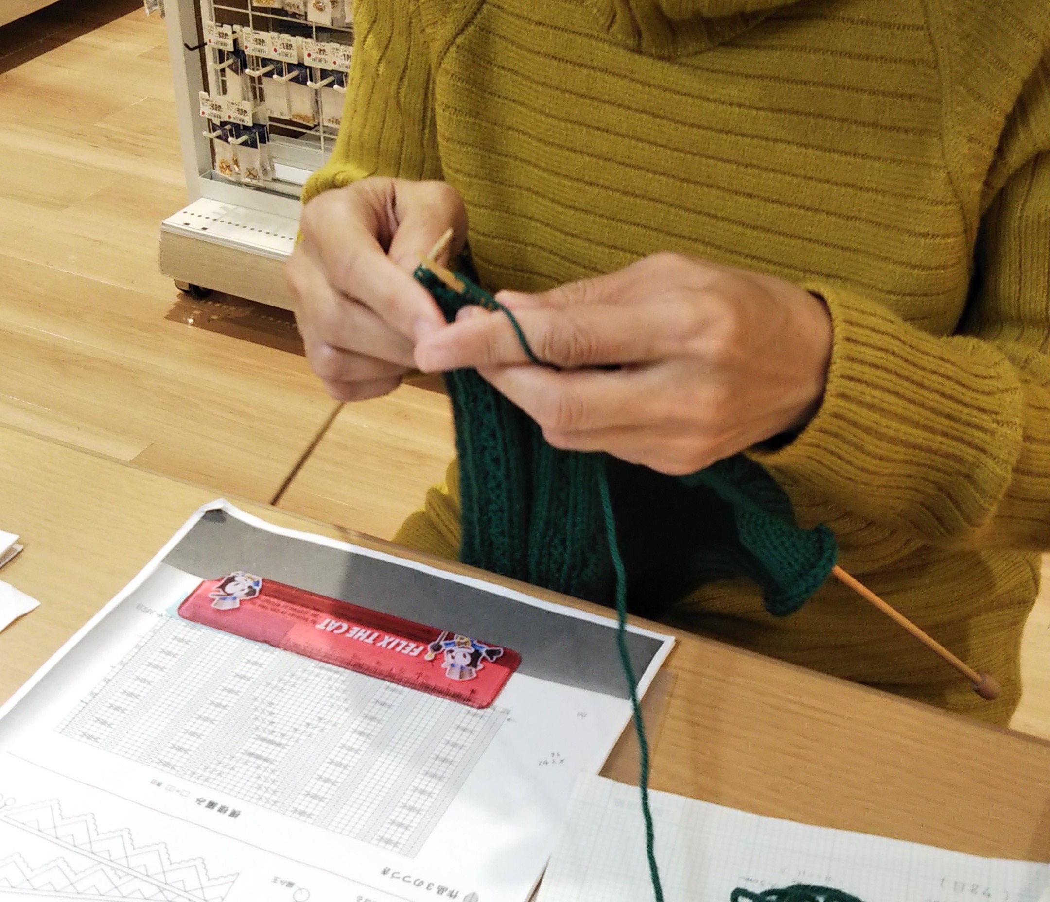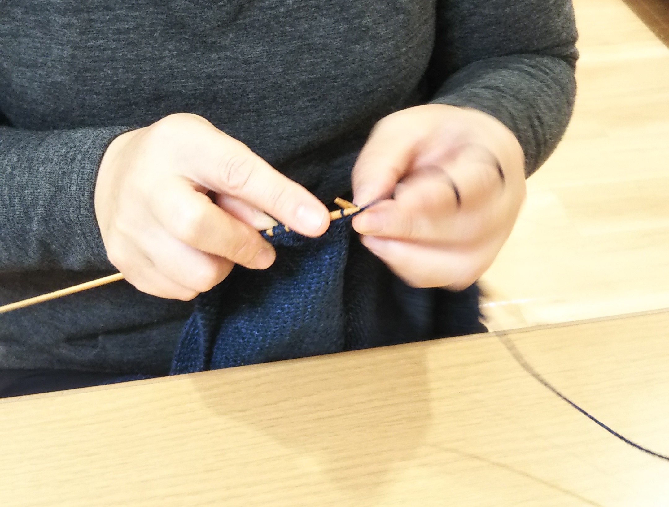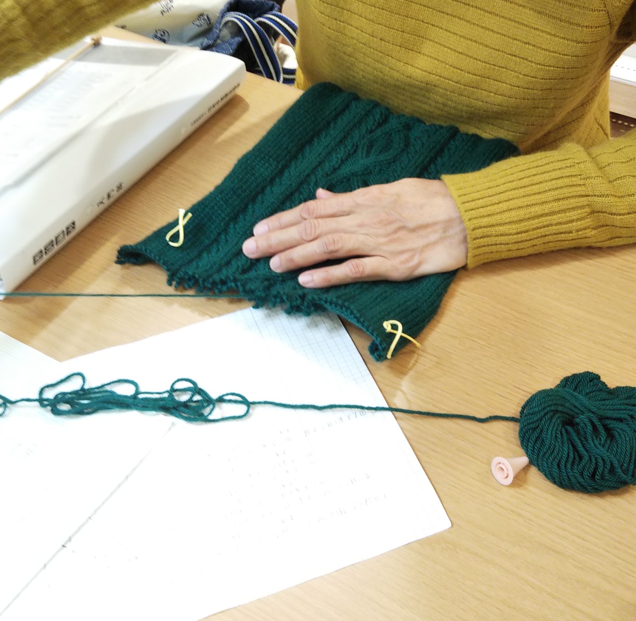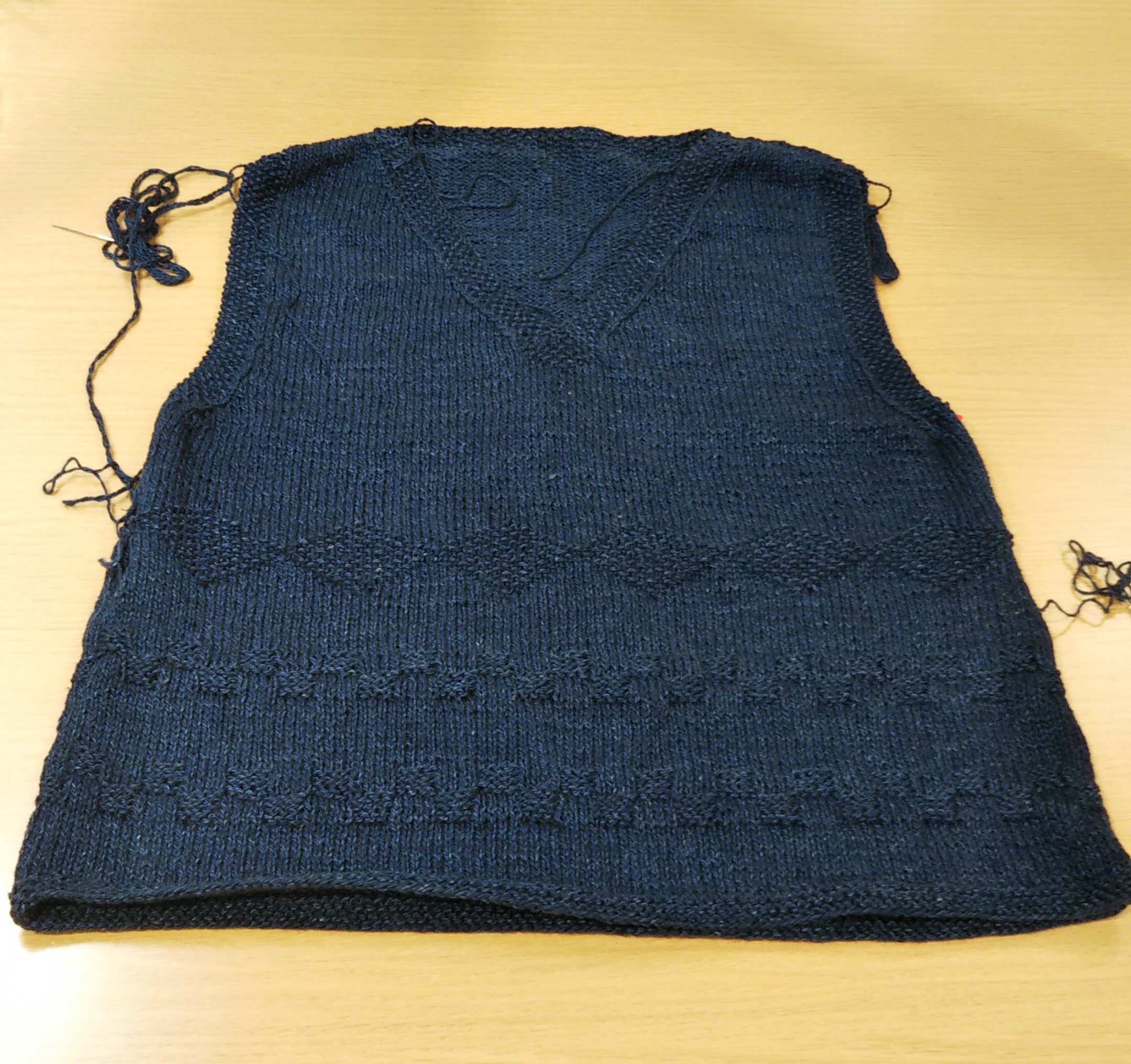 日本手芸普及協会<棒針入門科>最終課題のヴェストに取り組んでいるお方でした