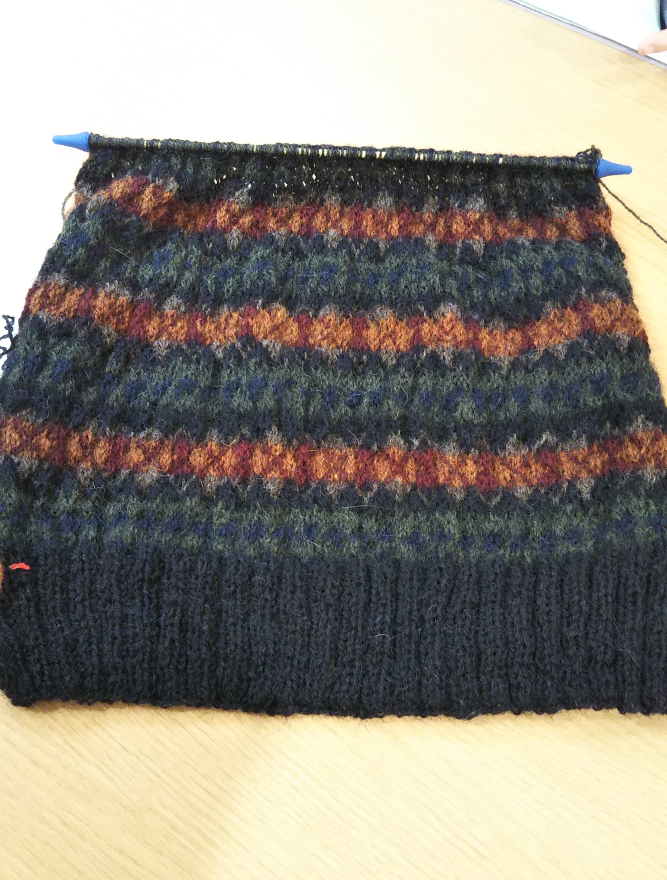 午後の部は、フェアアイルのVネックヴェストに挑戦中のお方です。