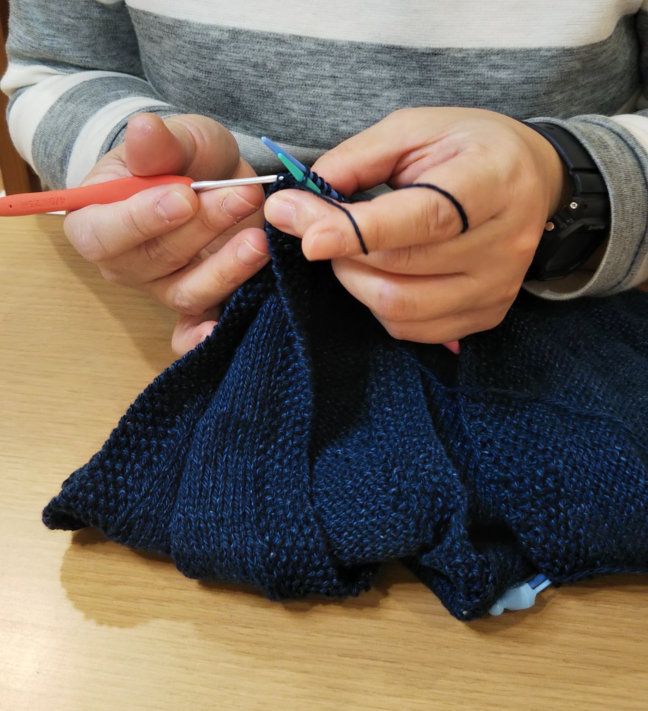 なので、数カ所2目一度しながら引き抜きはぎすることに。