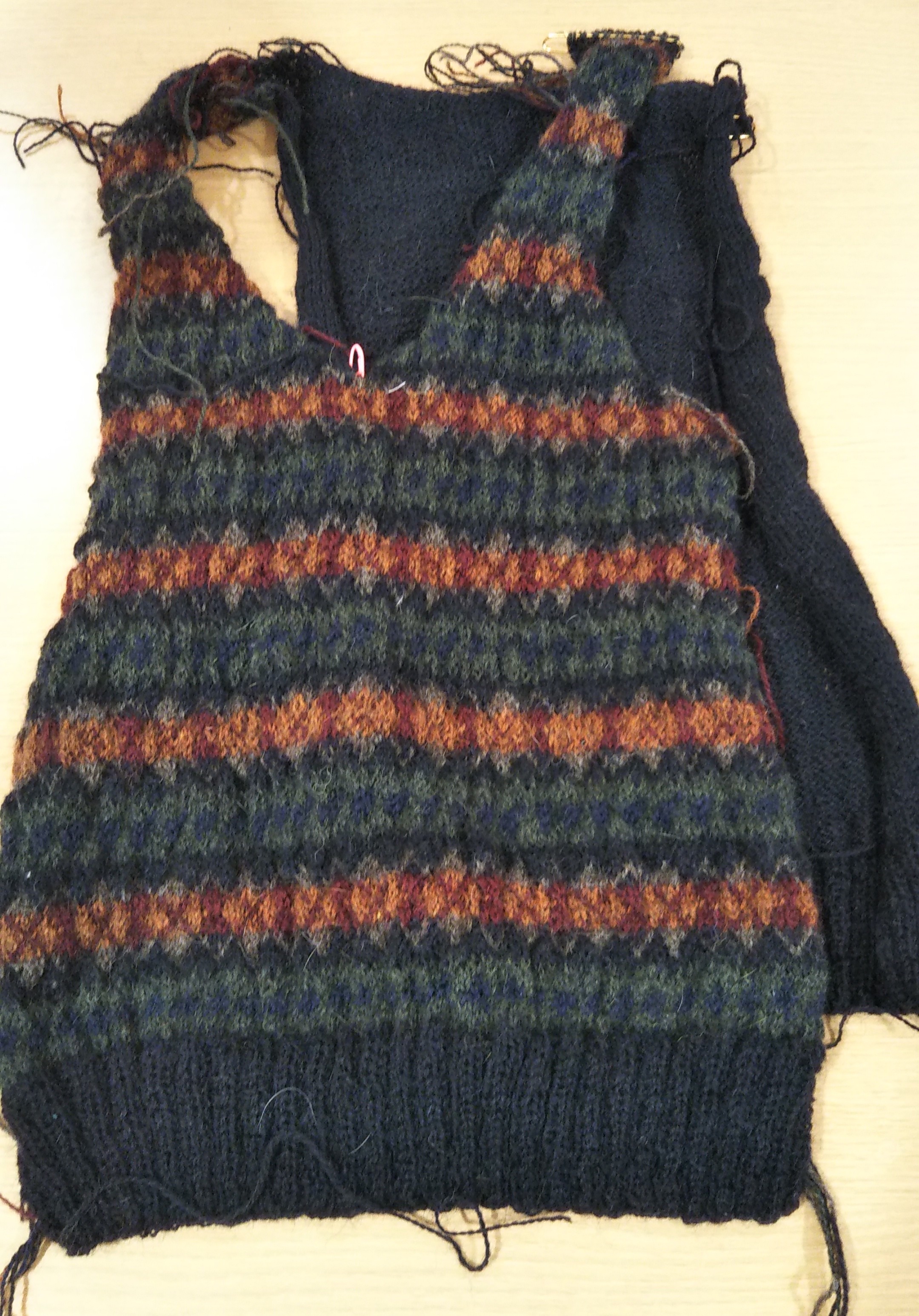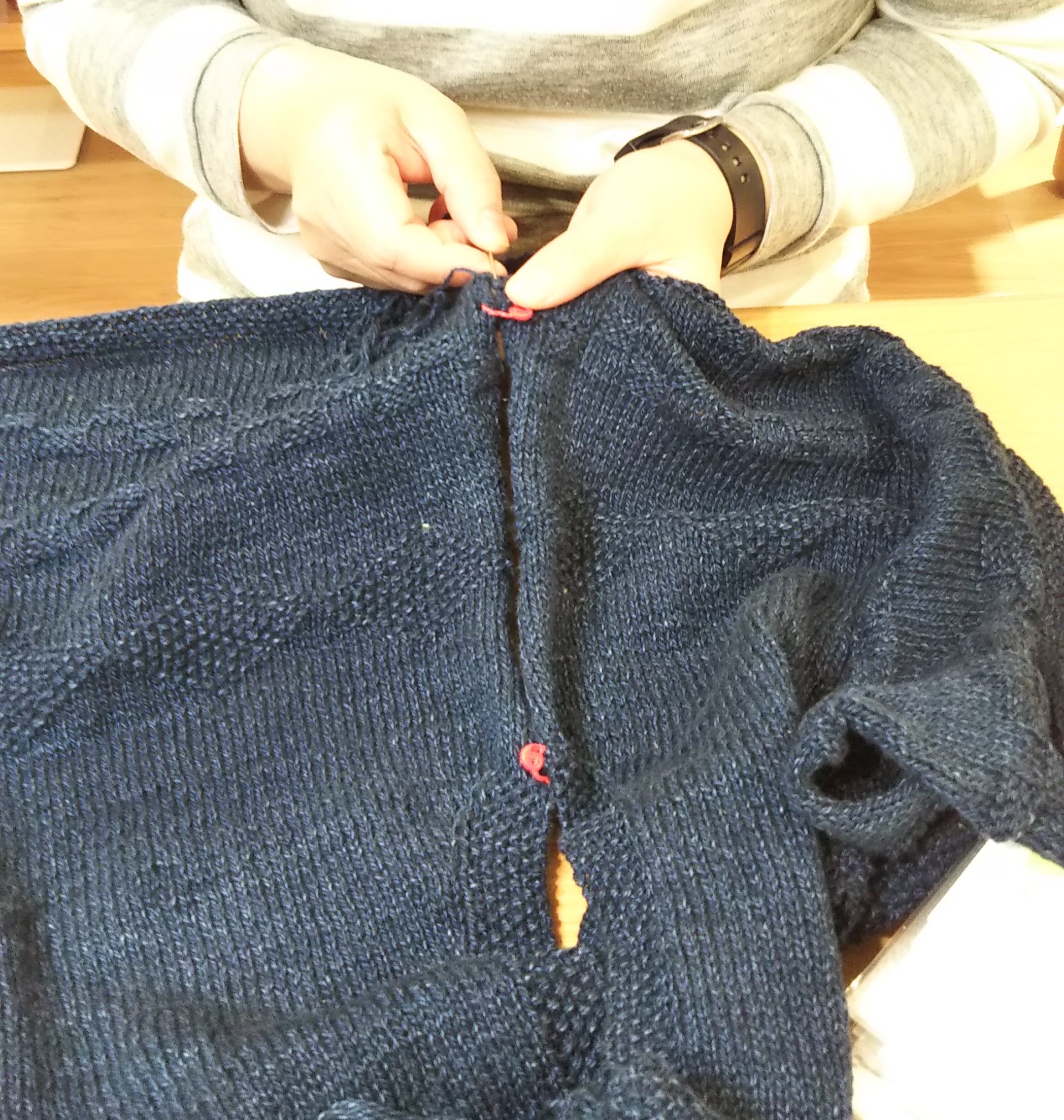 肩はぎ、脇とじが済むと、一気にウエアっぽくなってきますので