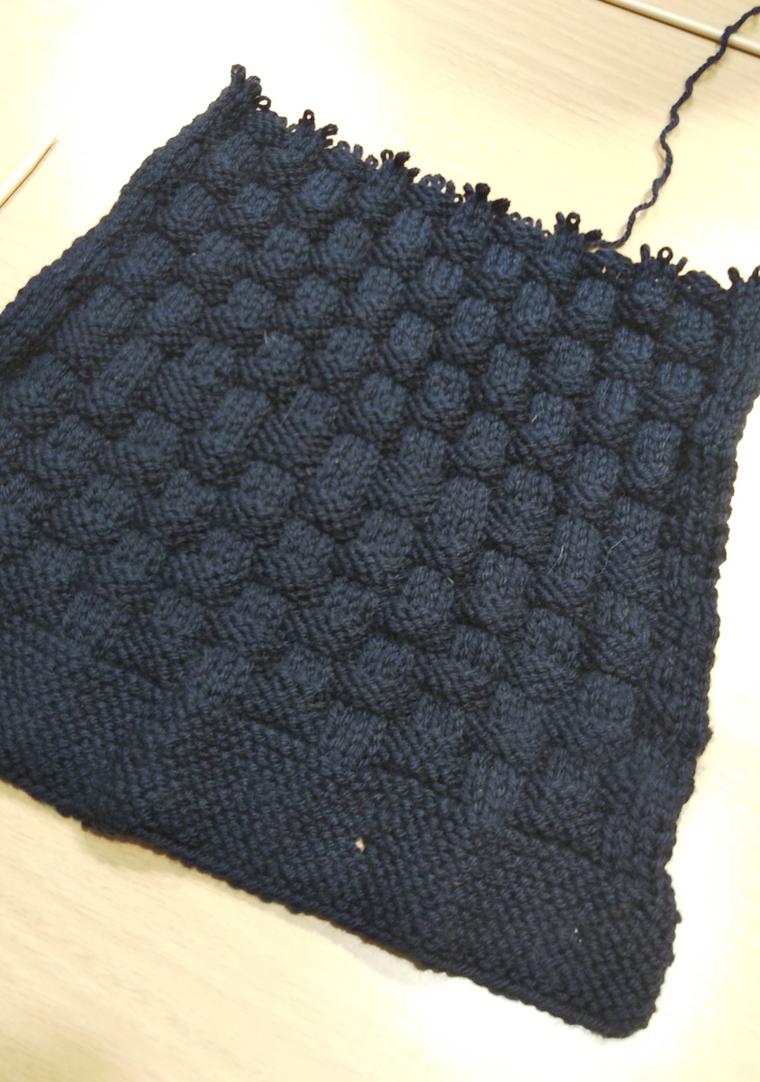 今回は棒針2本で平編みして、両端をとじていただきました。
