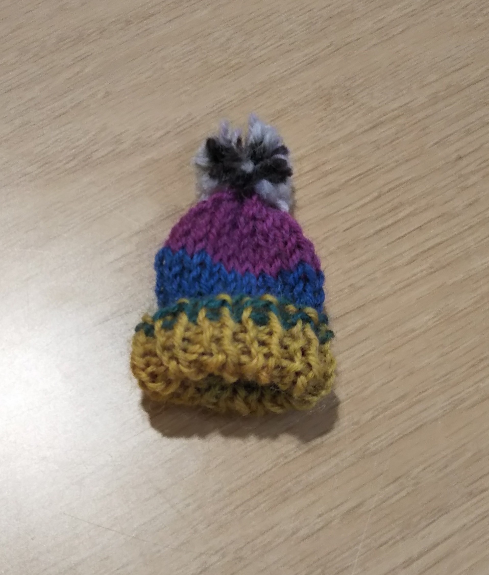 ミニチュアのニット帽の仕上げをば。