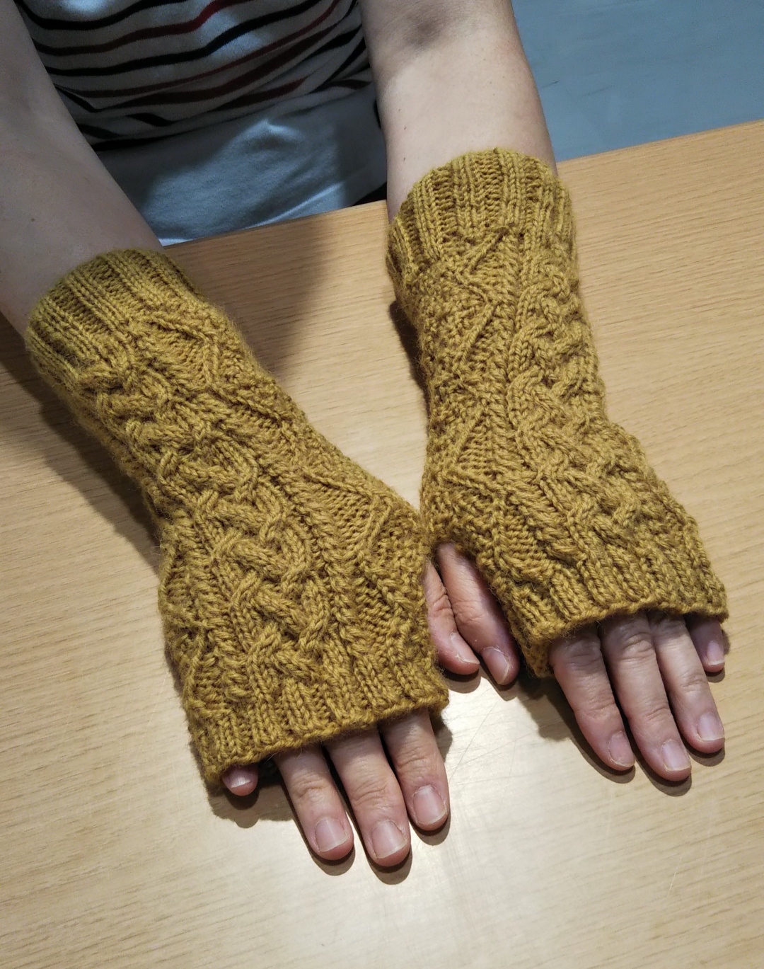 交差模様のアームウォーマーを提出してくださいました。