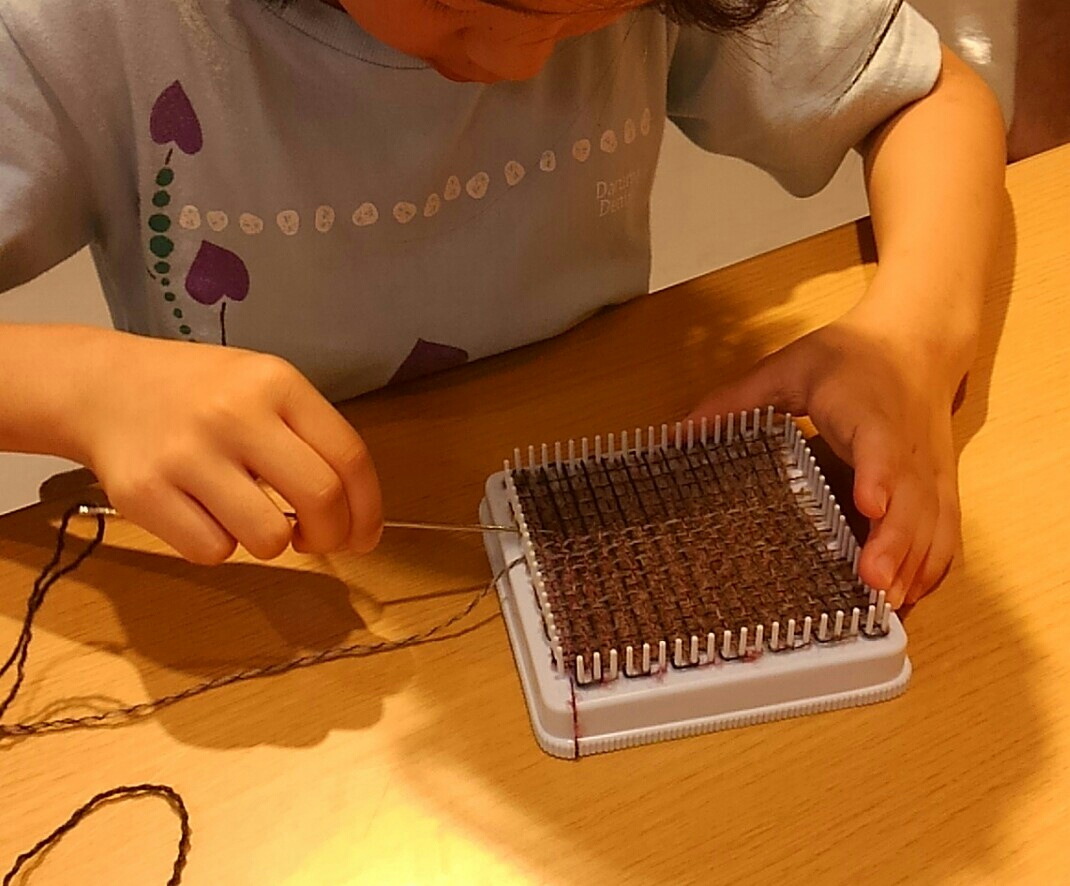 平織りで作るコースターの体験アイテムをおすすめしたところ