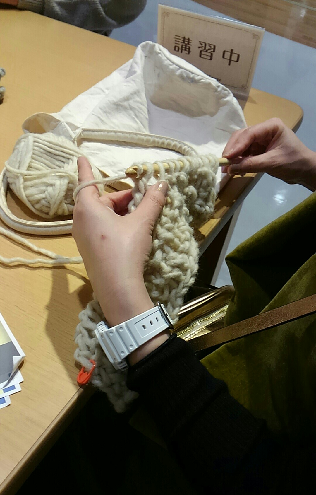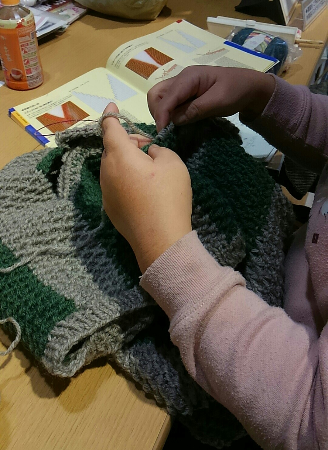 毛糸も針も太いので、ざくざく編めますもんね。