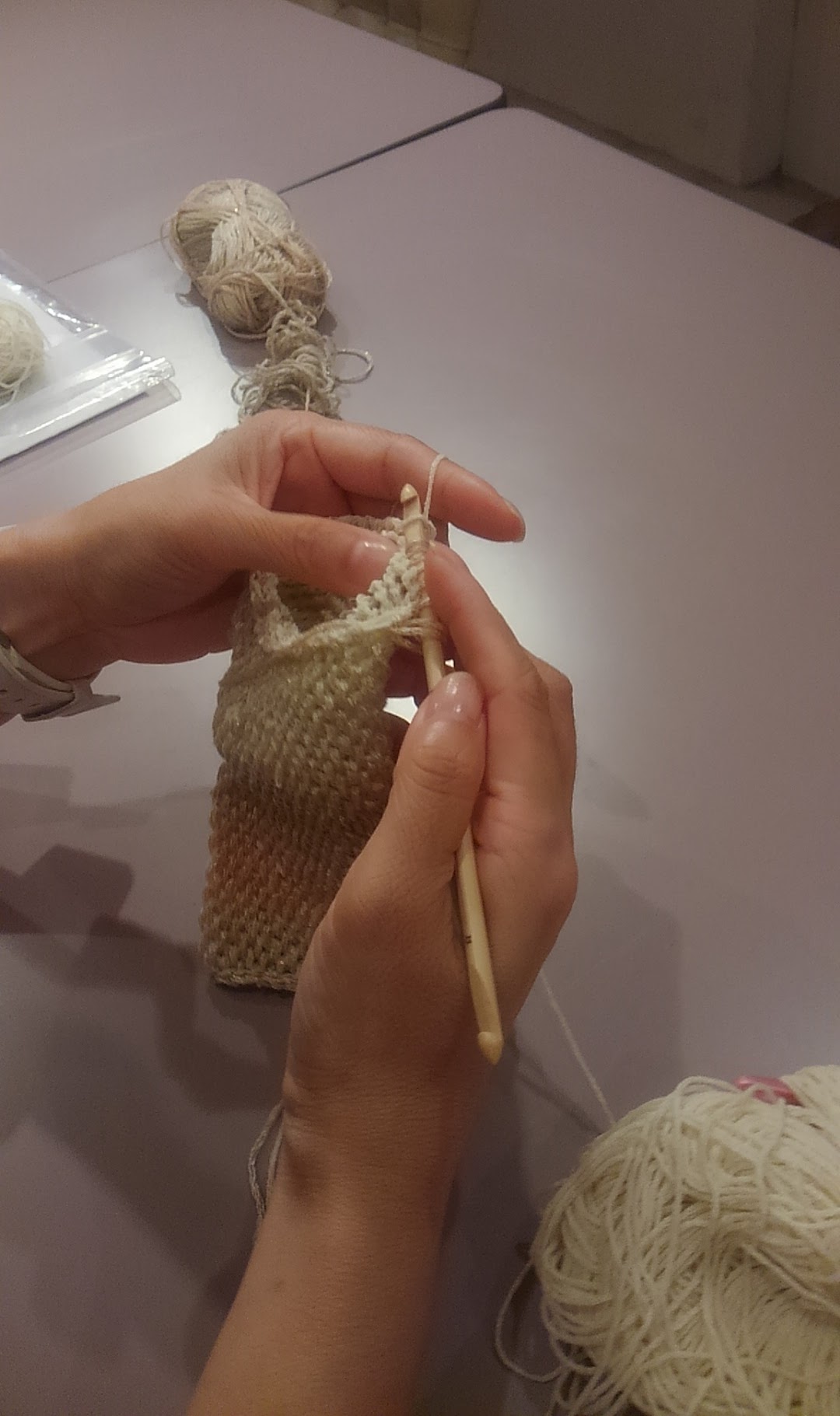 なんと、アフガン編みは、昔、編んだことがあるそうで、
