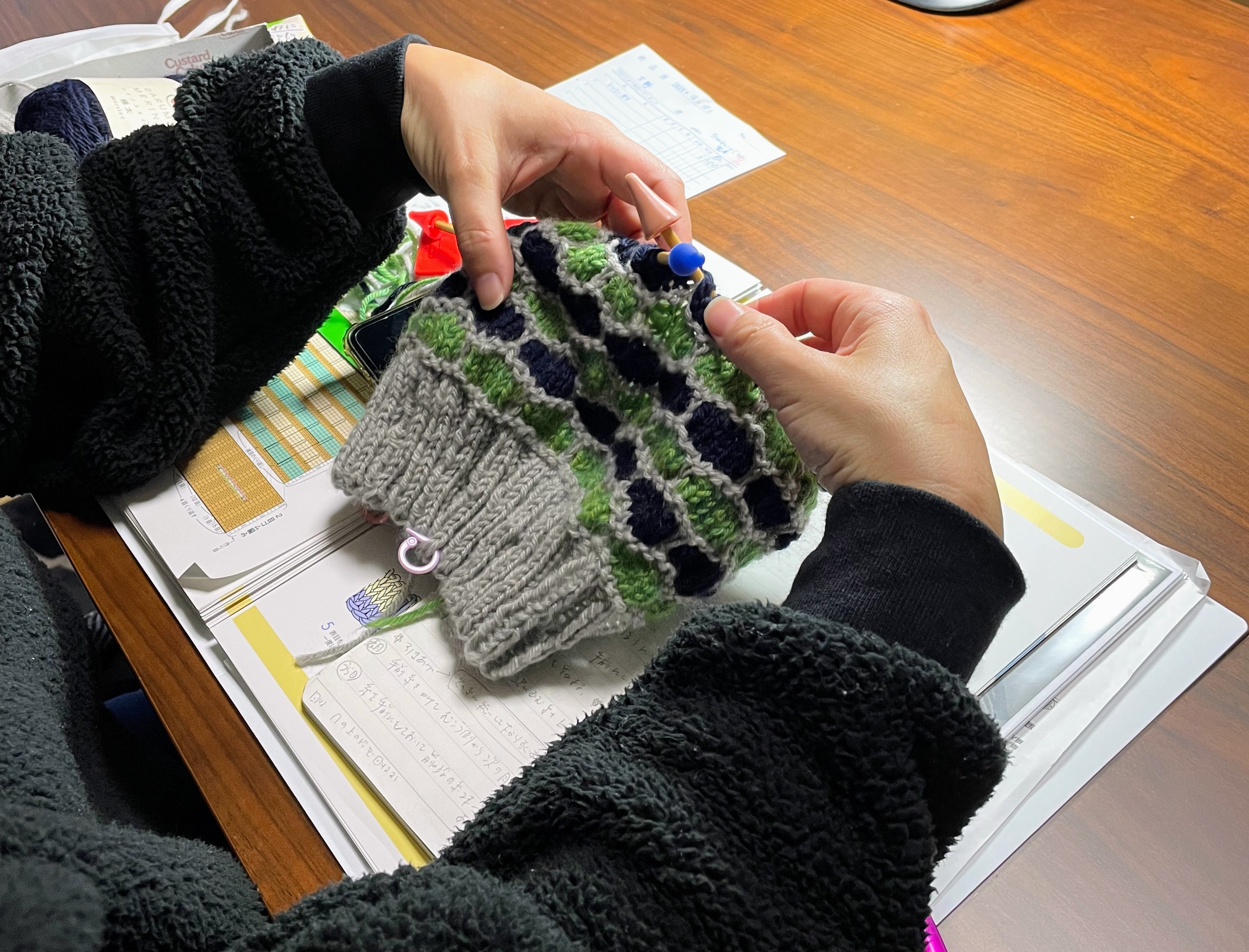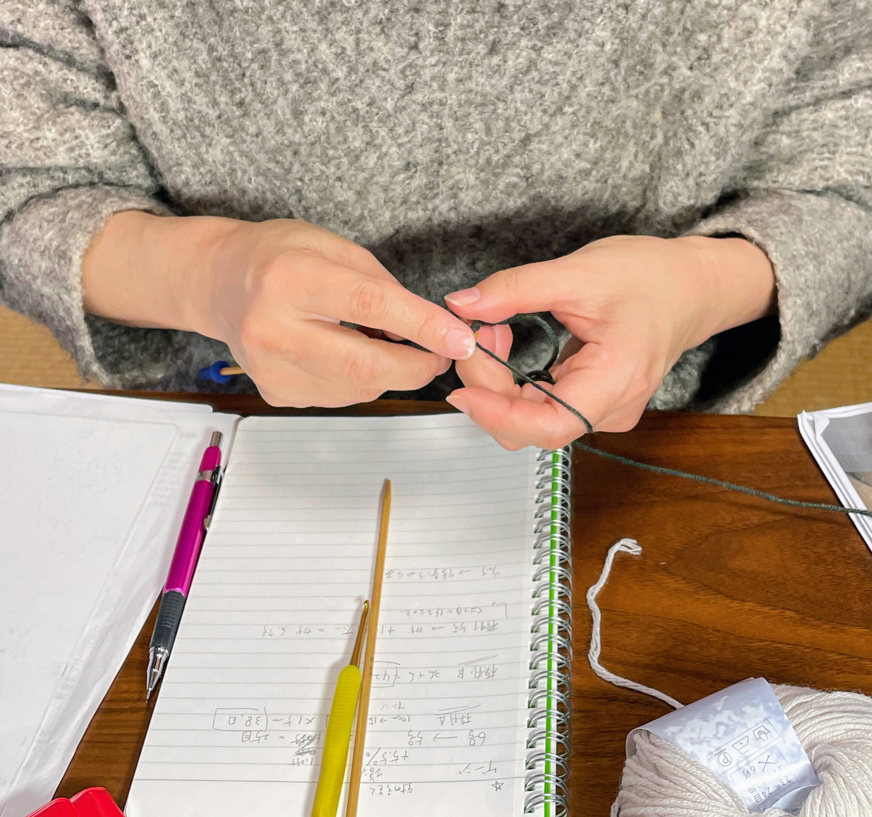 編み図を見て慎重に編み進めていらっしゃいましたよー
