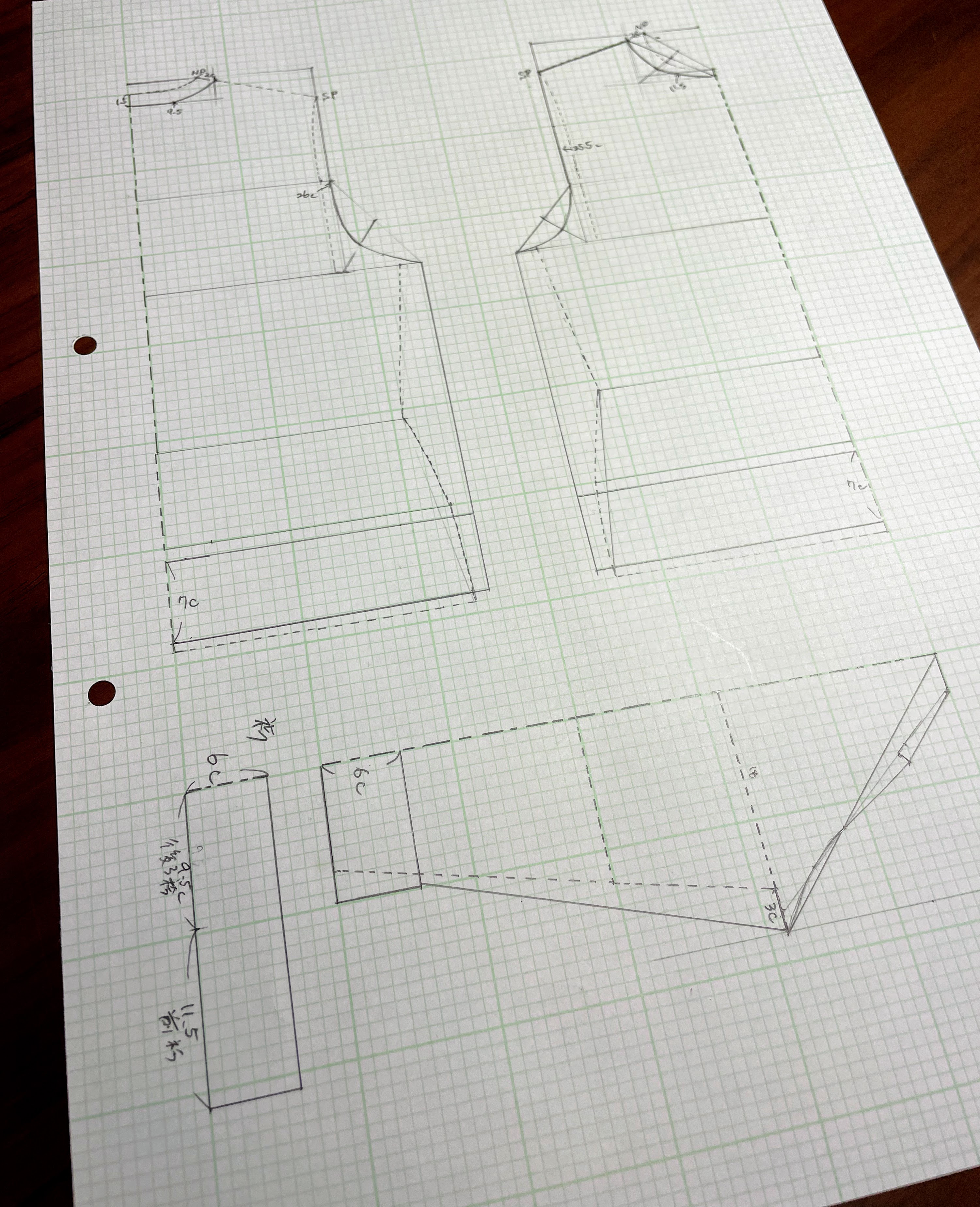 肩下がりや袖下などの斜めラインの割り出しにも取り組んでいただきまして。
