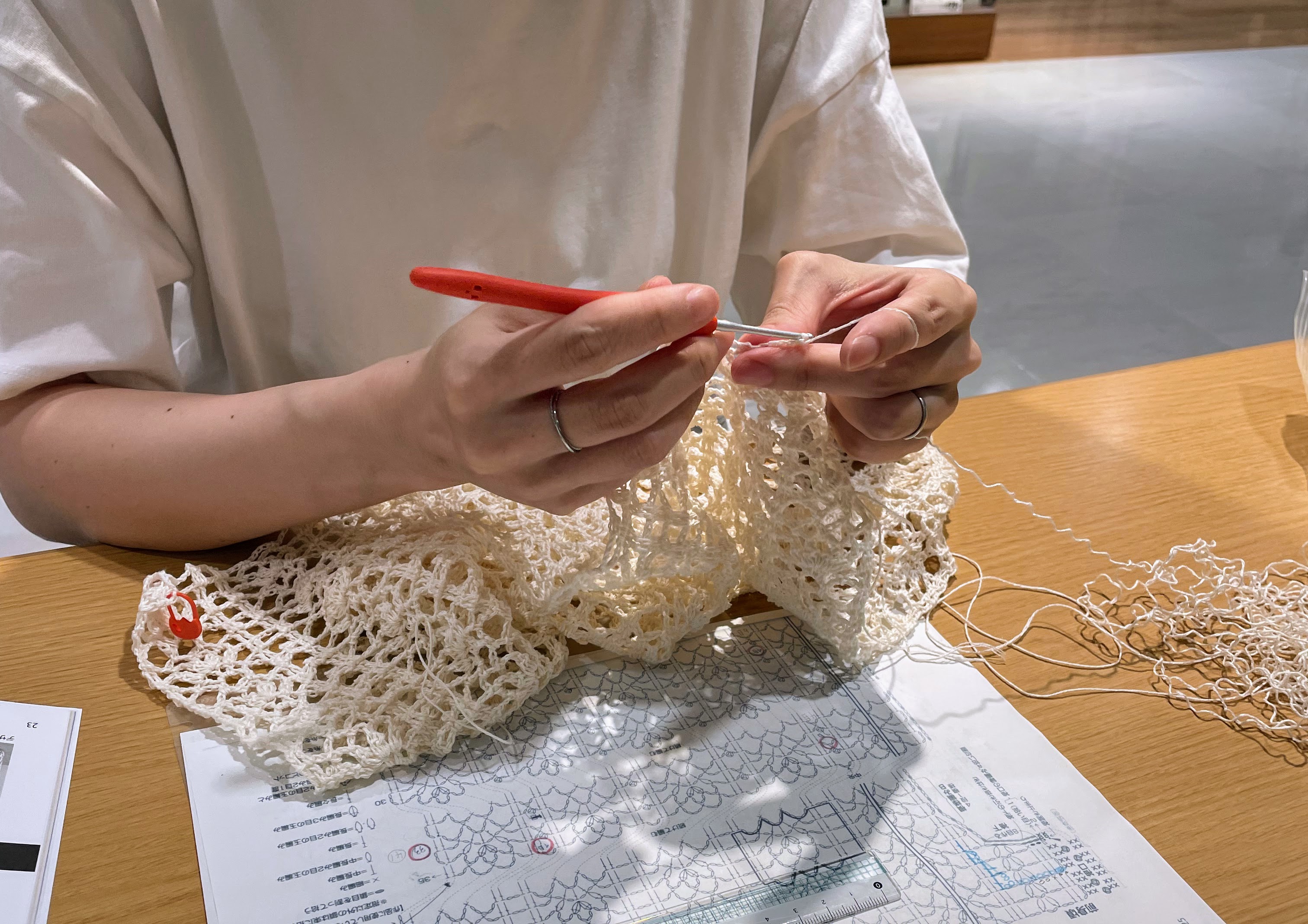 その後、実際に編み進めていただきました