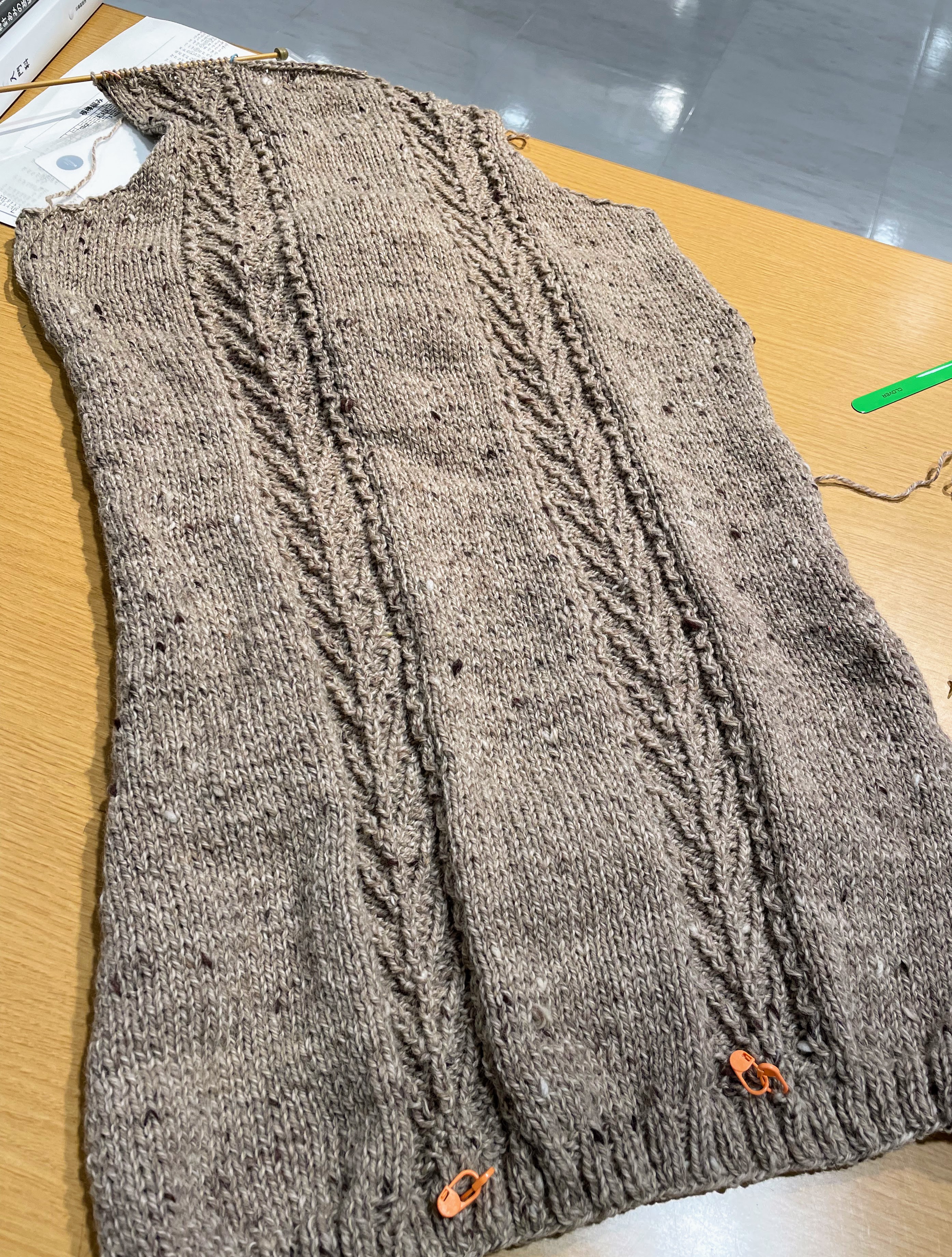 引き続きこの調子で、前身頃も編み進めてくださいね