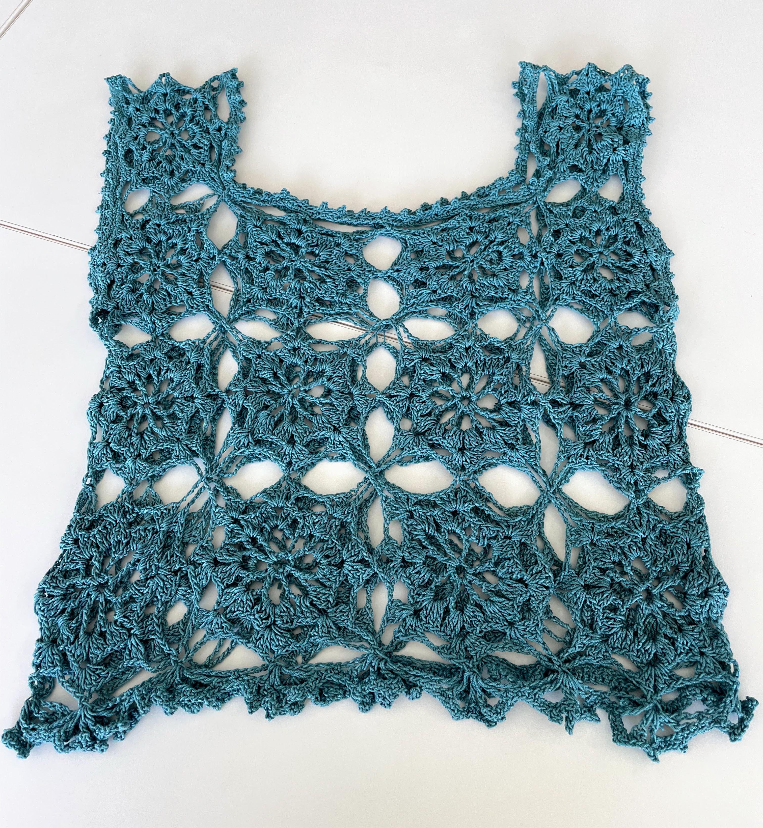 まずは前回編んでいらっしゃったモチーフつなぎのヴェストを完成させて
