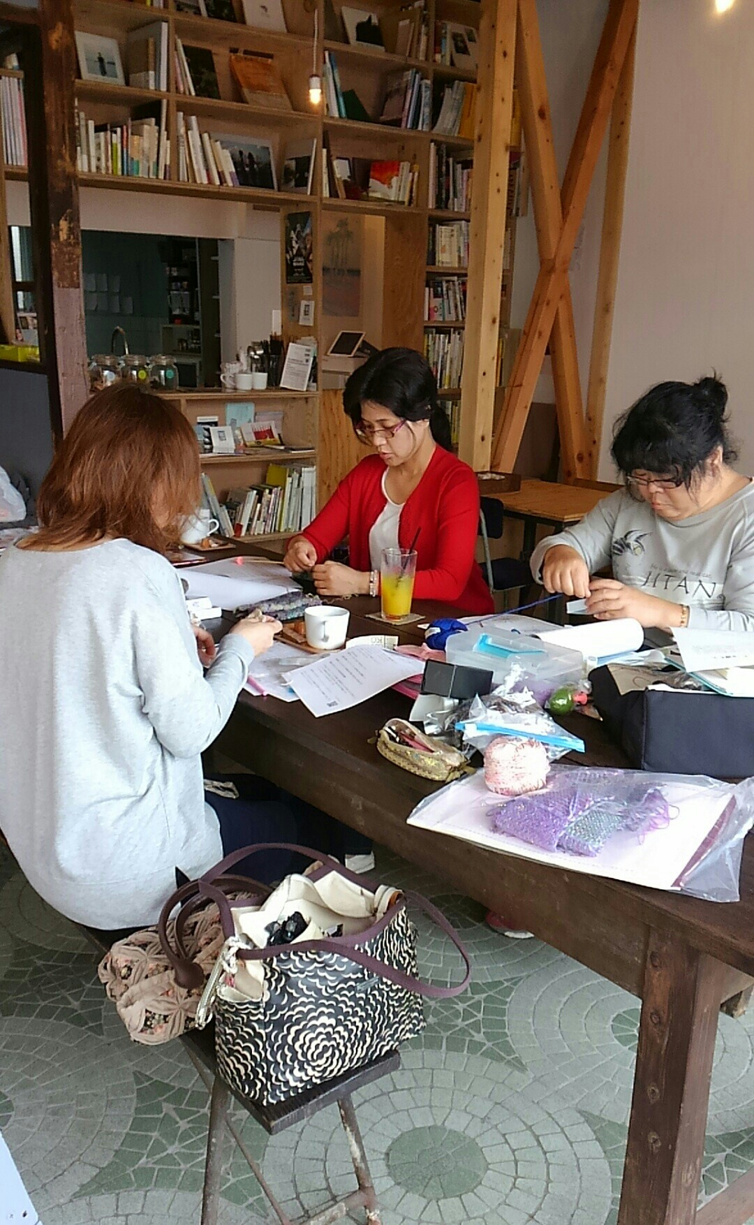 飲み物をいただきながらあみものできるようになっております。