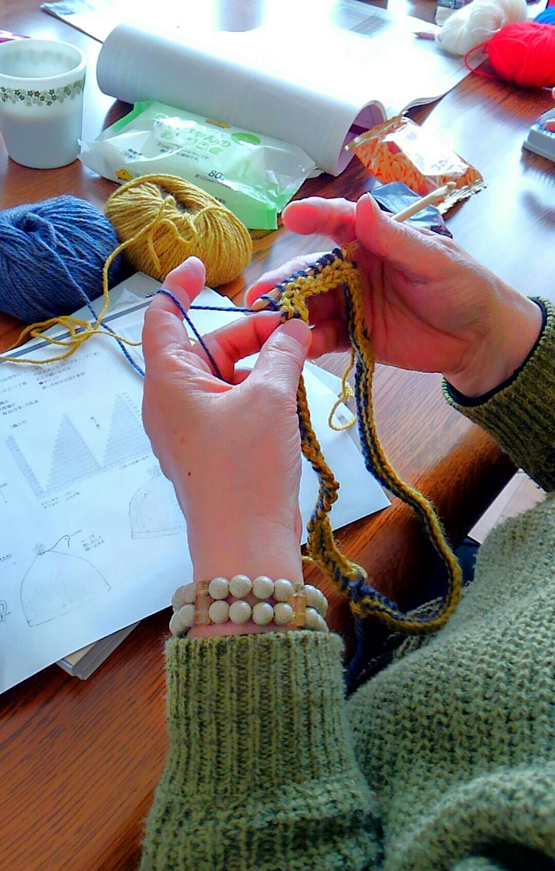 気を抜くと編み目がずれ、模様が崩れてしまうので
