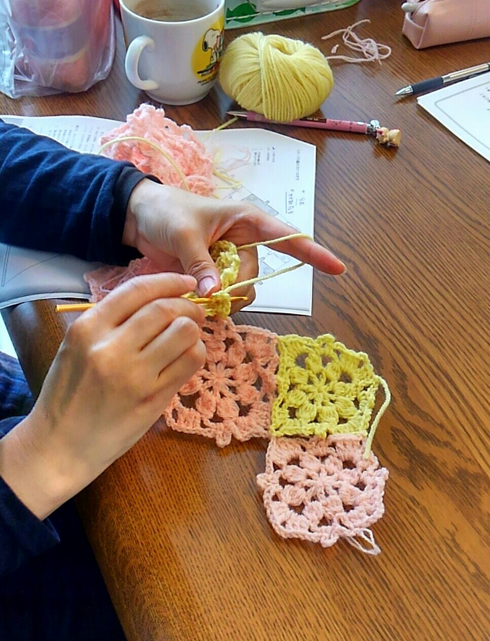 おしゃべりしながら、それぞれあみもの~