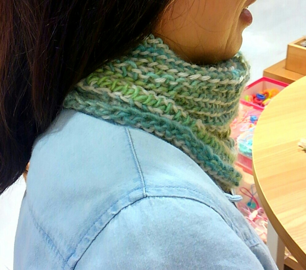 先々月からアフガン編みのネックウォーマーに