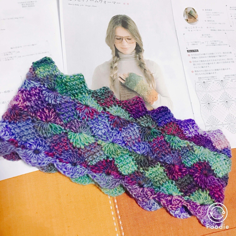 (これがその証拠写真。フラワーアフガンクロッシェのネックウォーマーが完成してます)