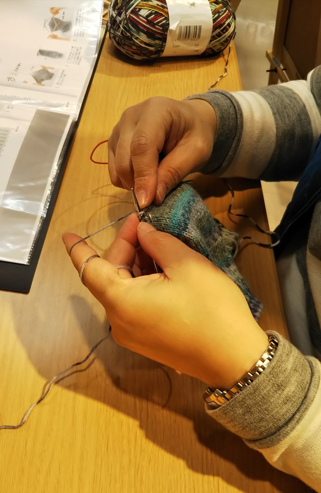 この日は靴下編み最大のヤマ場・かかとに取り組むことになりましたー!