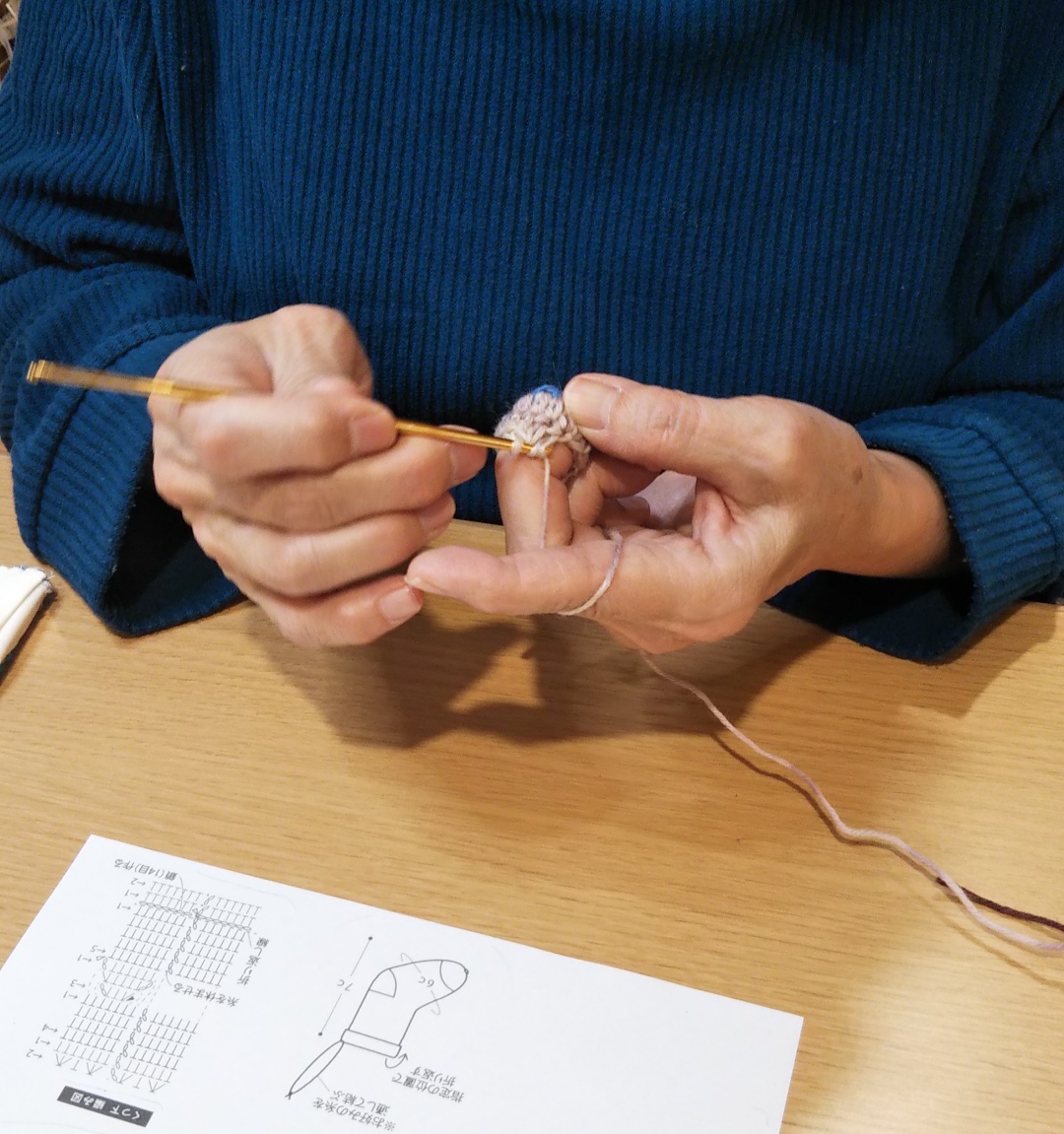 前回の手作り体験会・ねこのエコたわしを編むにもお越しくださったお方です