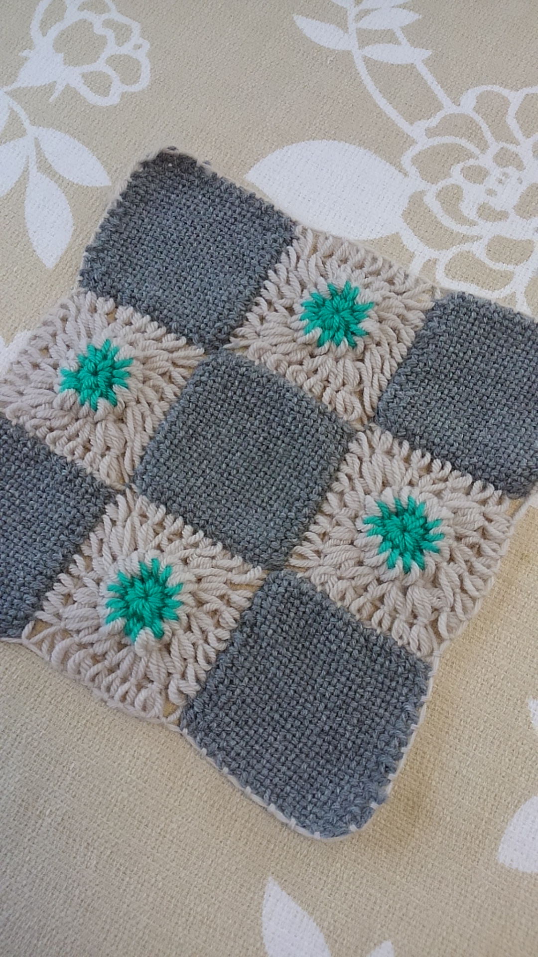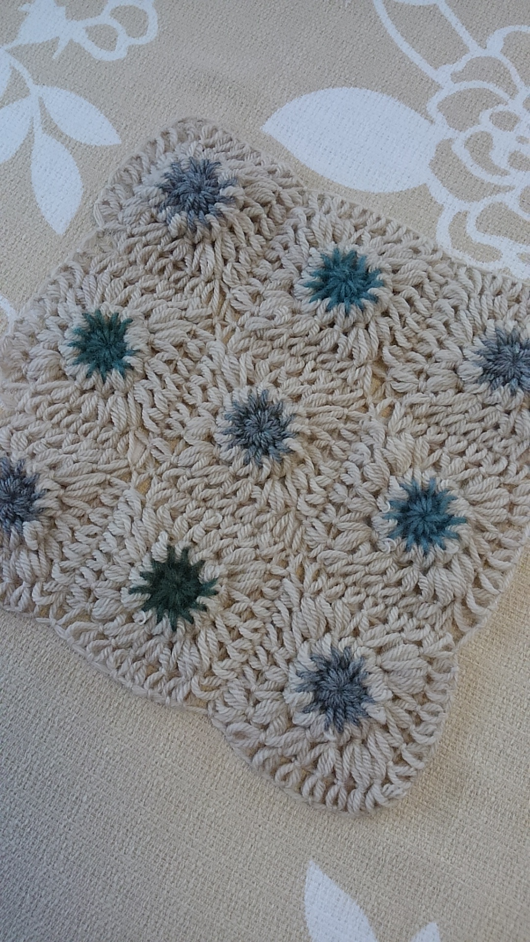 かぎ針でまわりを編むと、モチーフになります。