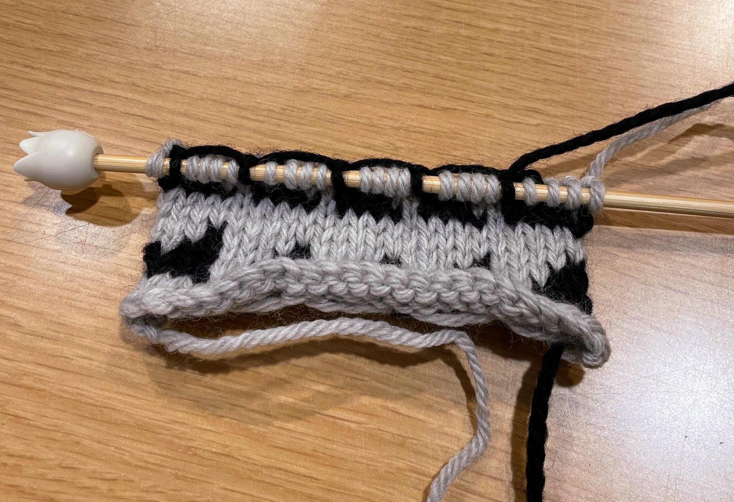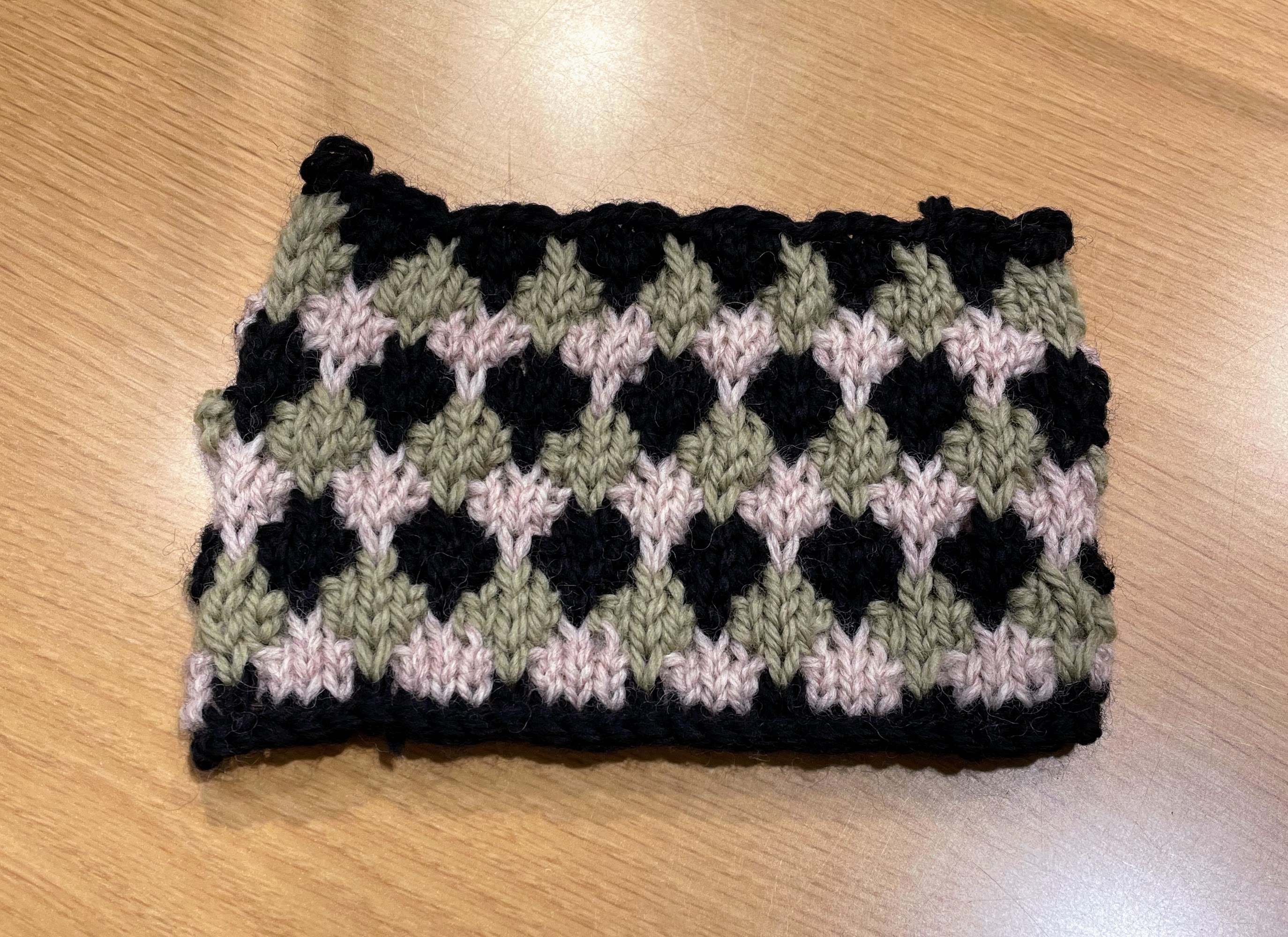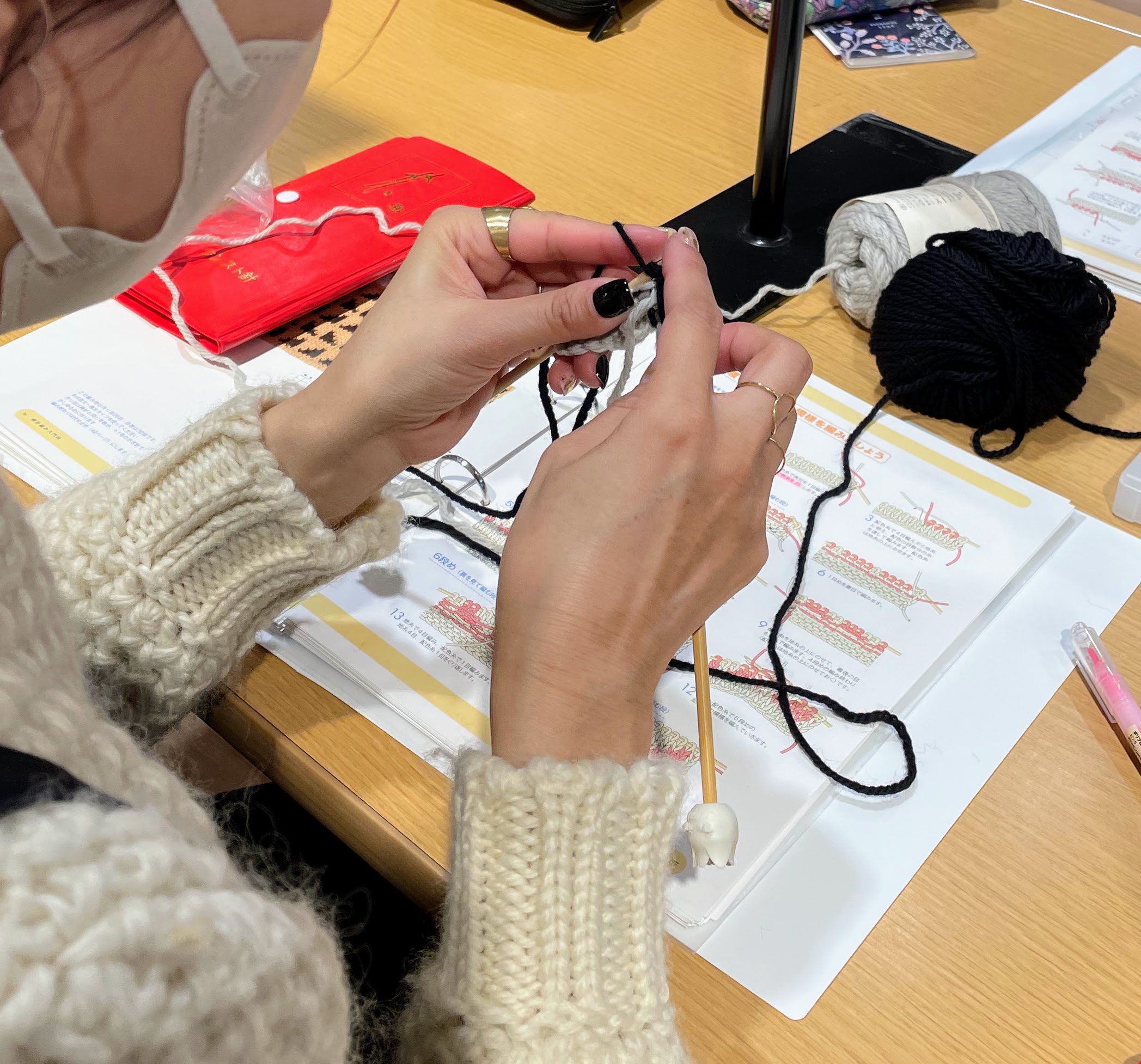 地糸・配色糸を片手ずつ持って編む方法を試していただきました。