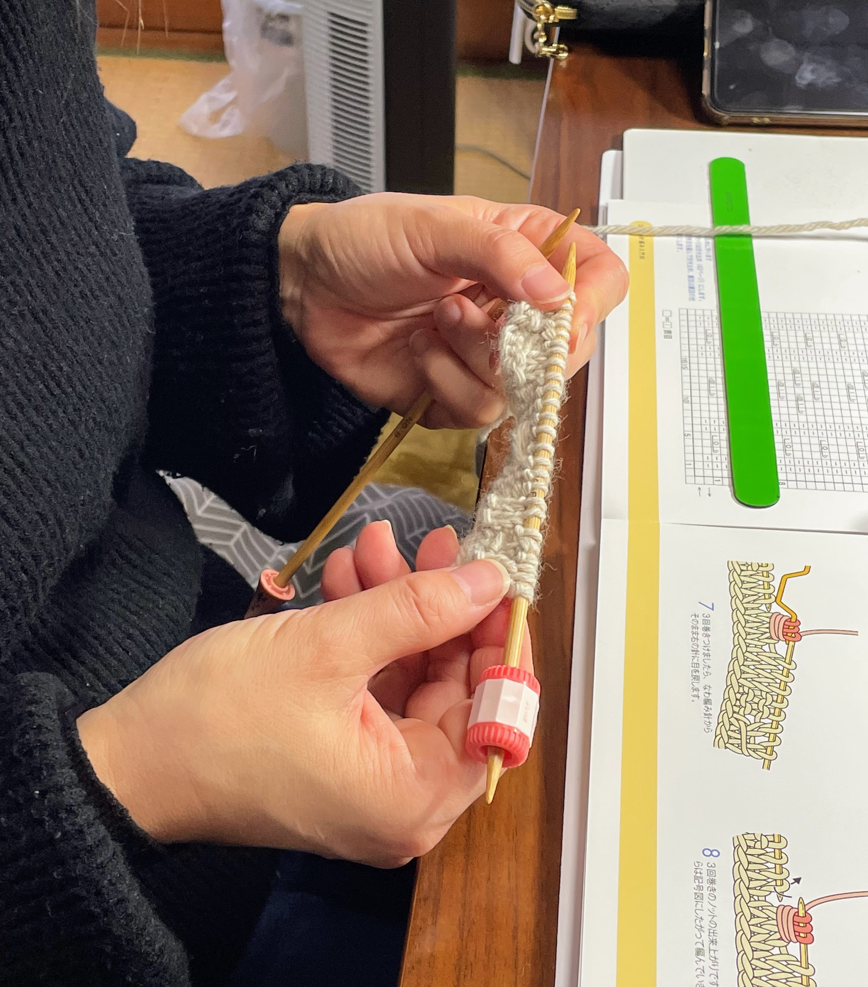 日本手芸普及協会<棒針編み入門科>のカリキュラムに取り組んでいらっしゃるお方が