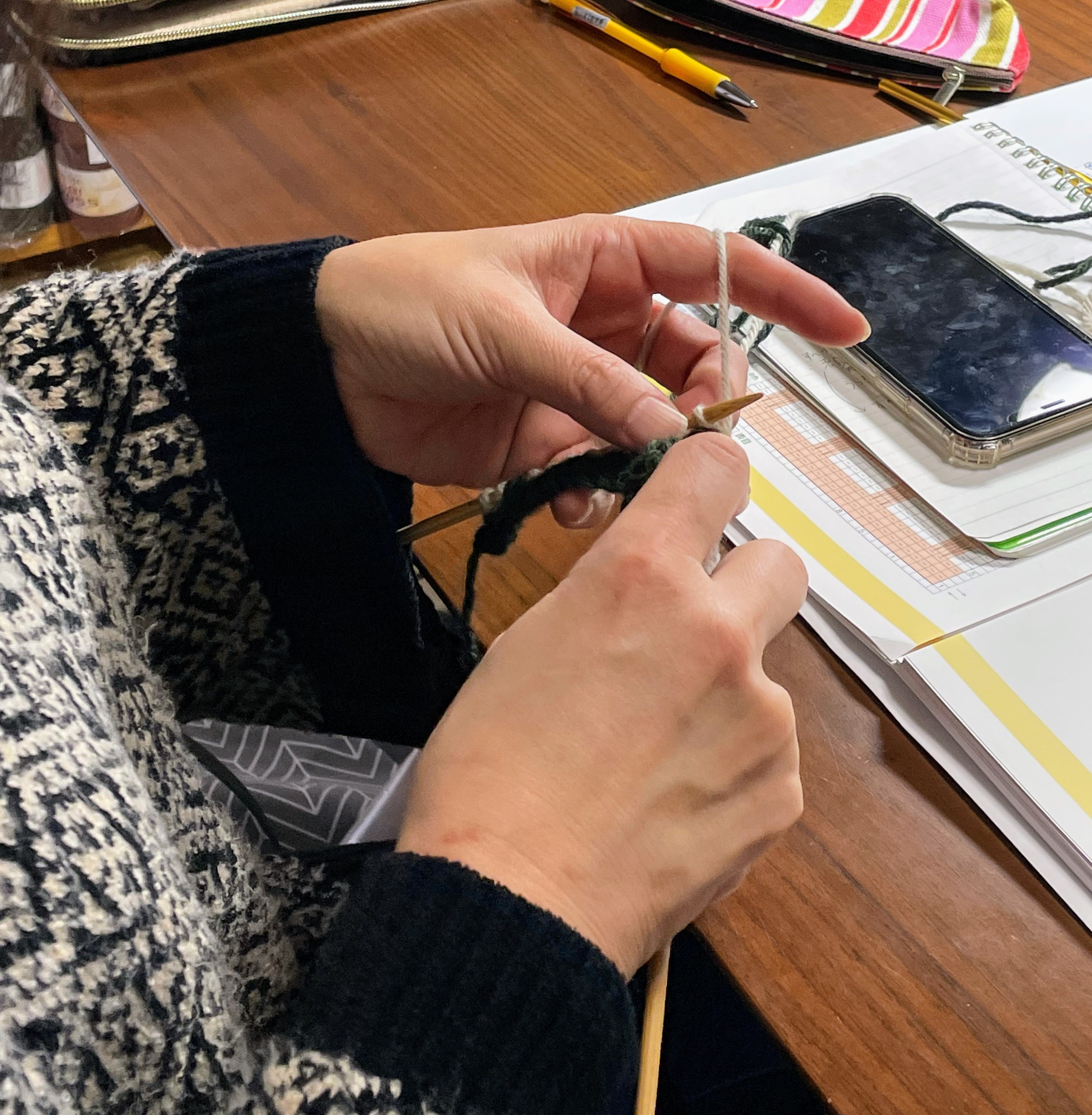日本手芸普及協会<棒針編み入門科>のカリキュラムに取り組んでいらっしゃるお方が