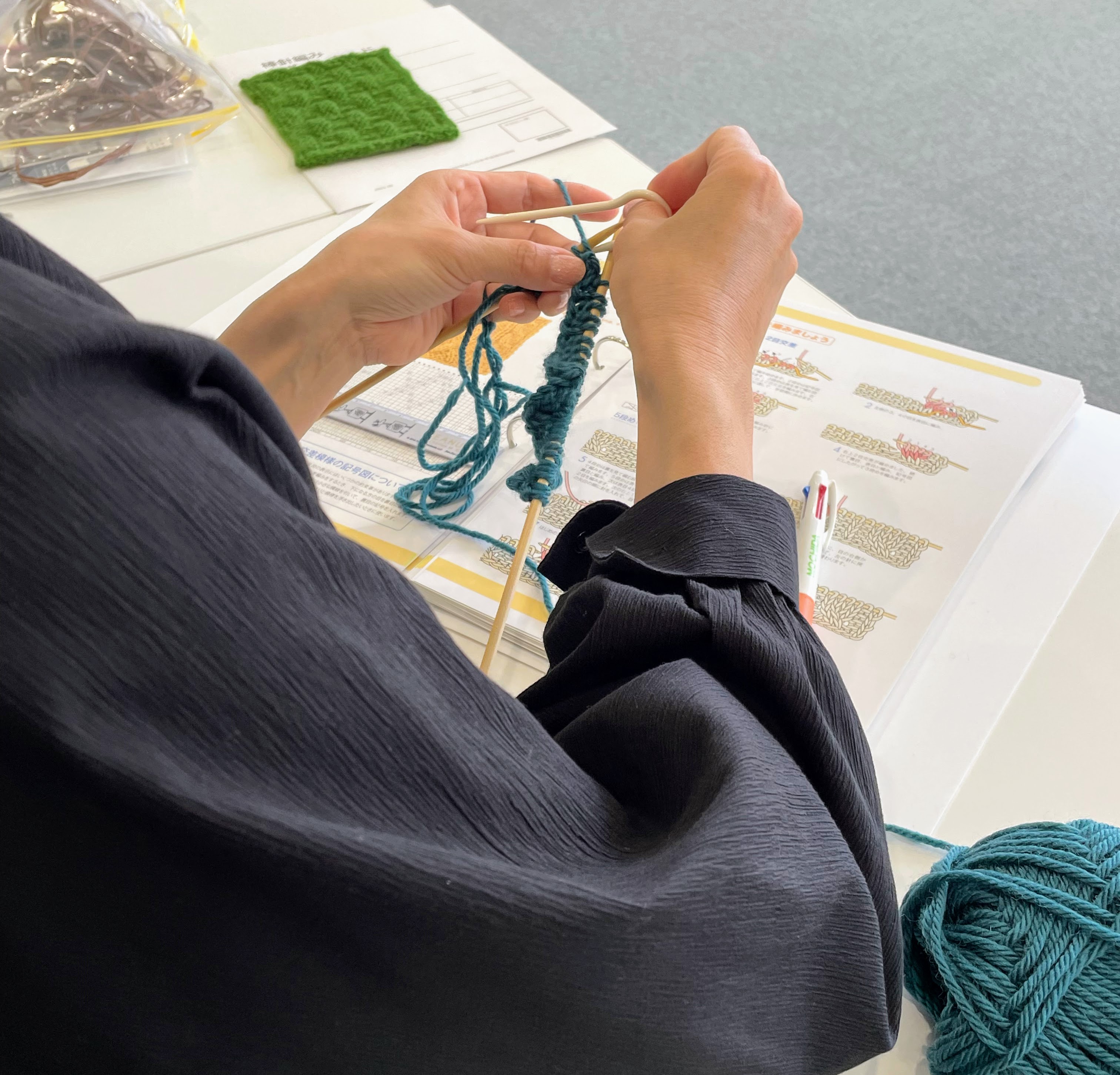 手順を確認しながら、確実に編んでいらっしゃいました。
