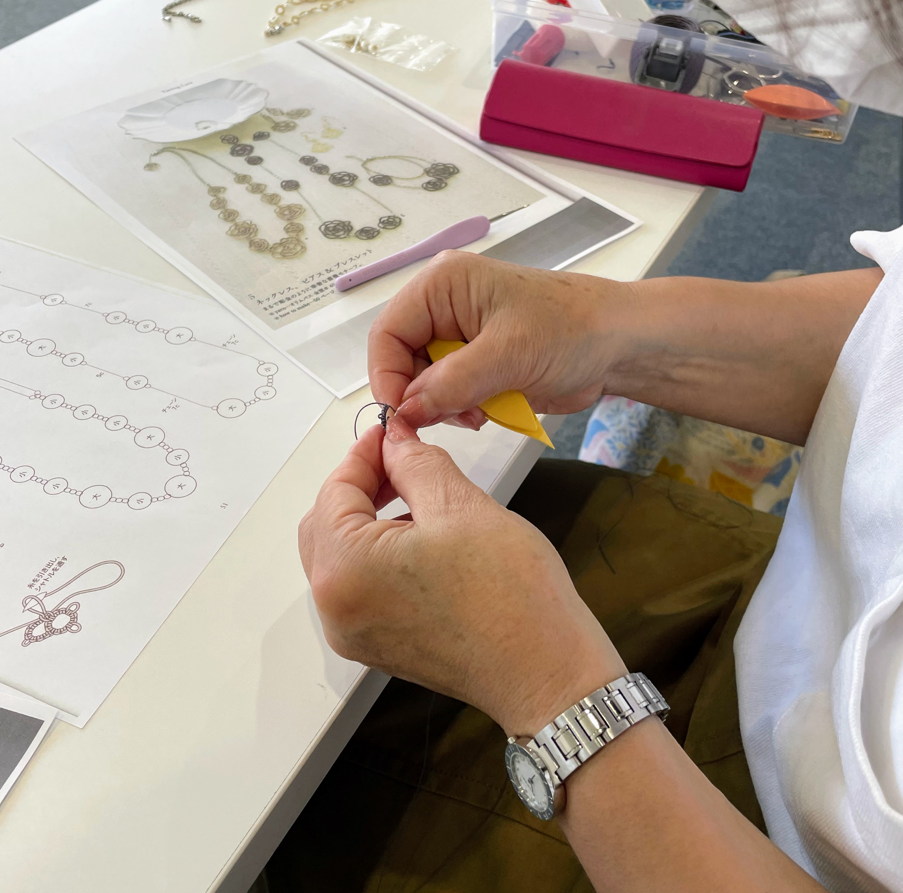 この日はバラのモチーフのネックレスに取り組んでいただきました。