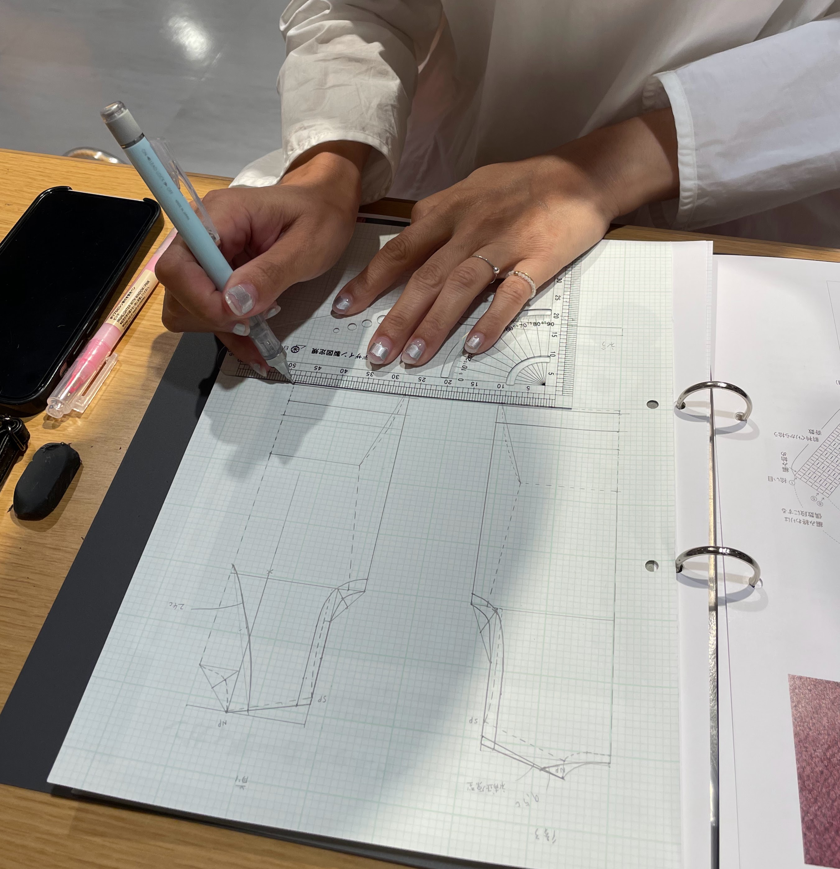 Vネックヴェストの製図に取り組んでいただきました。