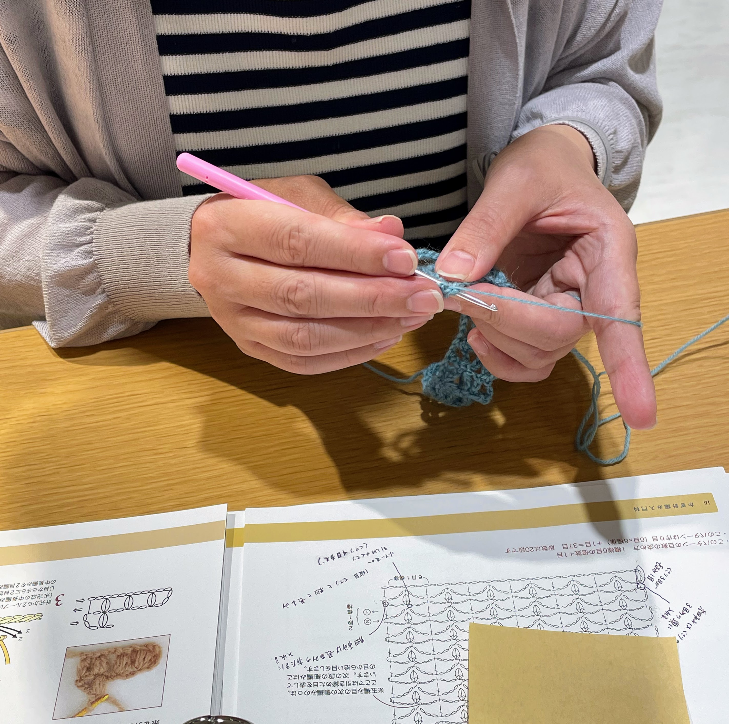 編みながら、重要なポイントを編み図にメモしていらっしゃったので