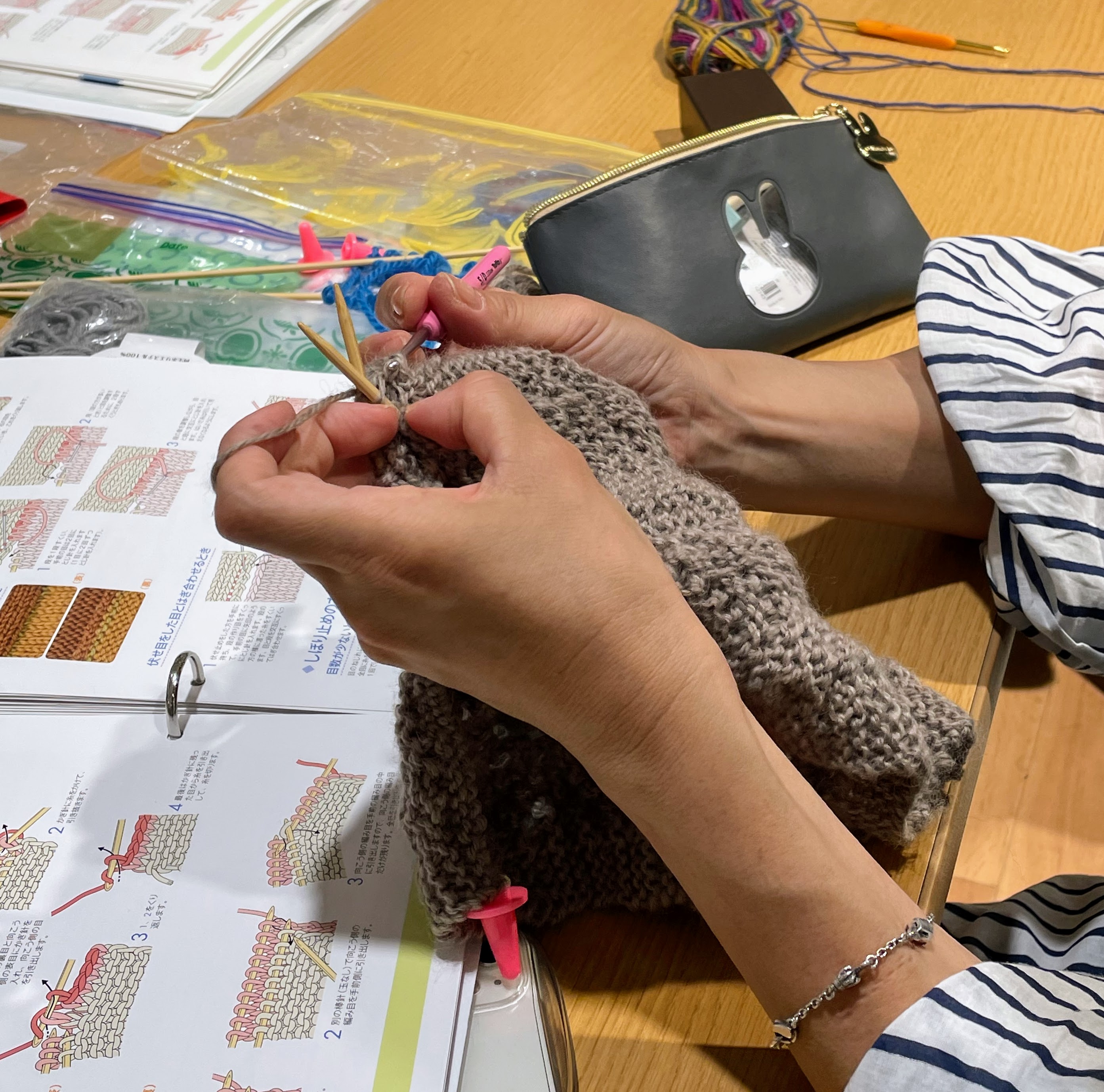 で、この日は前回に続き玉編みの模様に取り組んでいただきました。