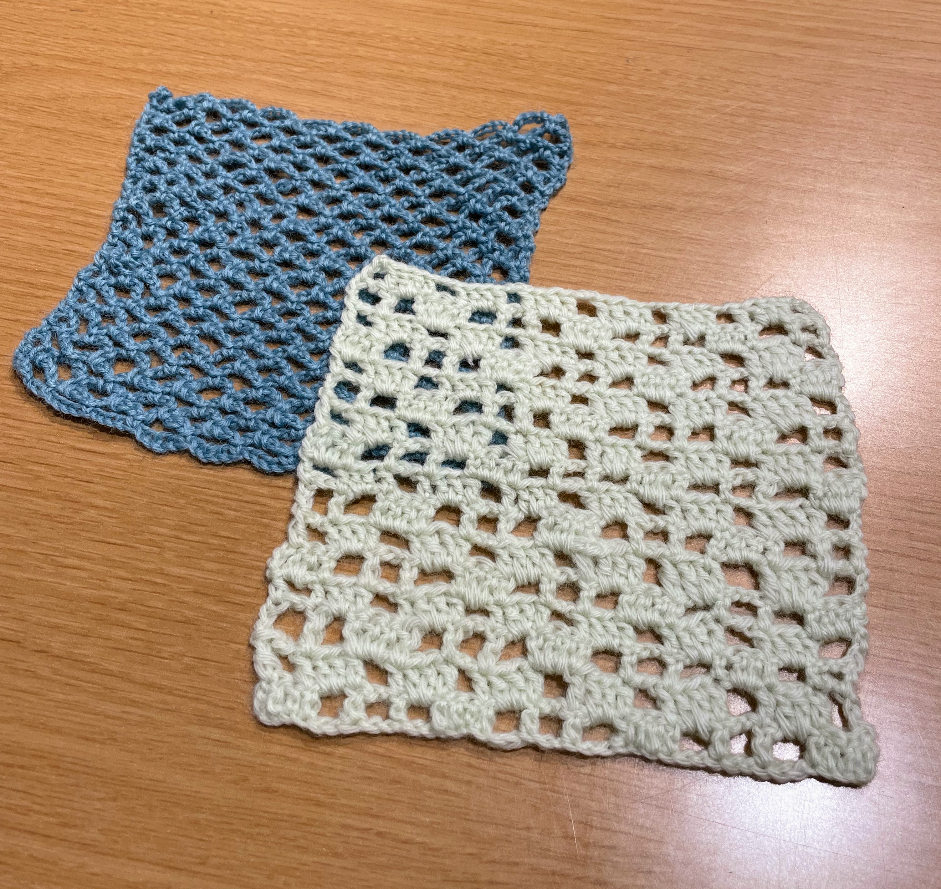 (「方眼編み」と「ネット編み」です)