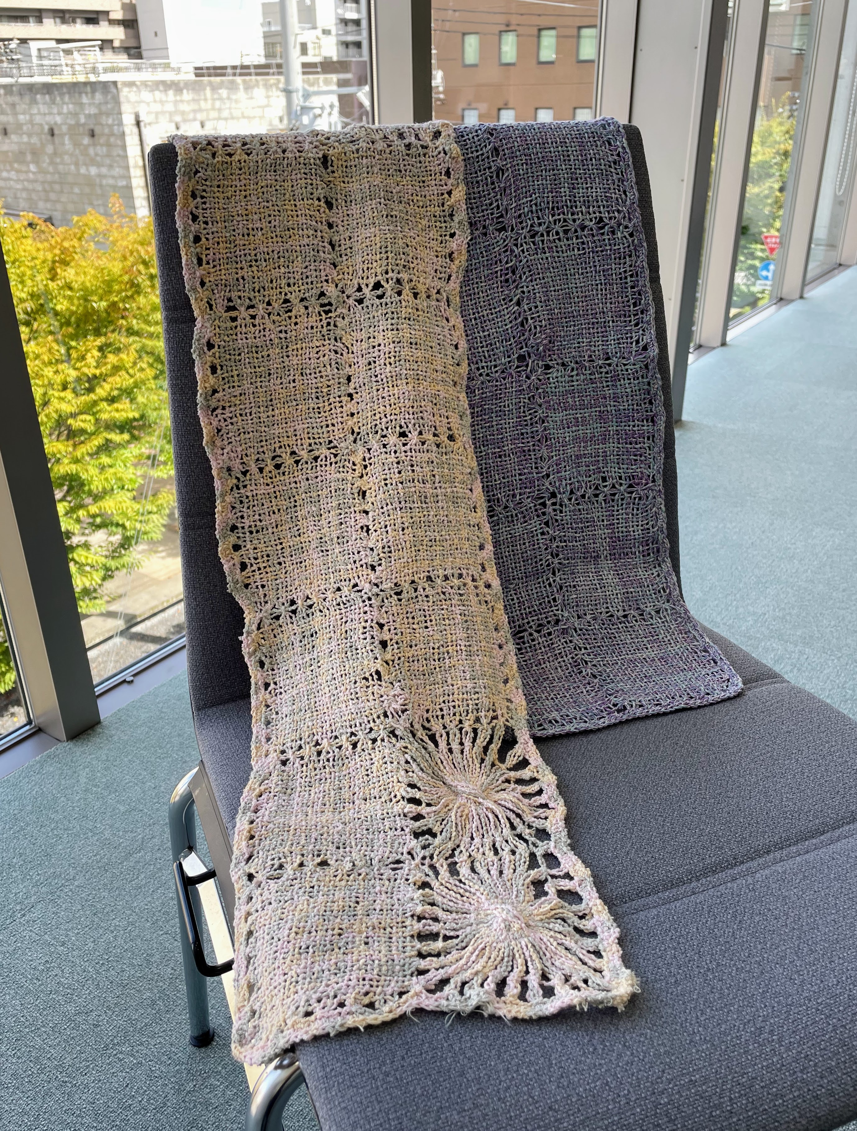 (どちらもサマーヤーンで。それぞれ味わいがありますね