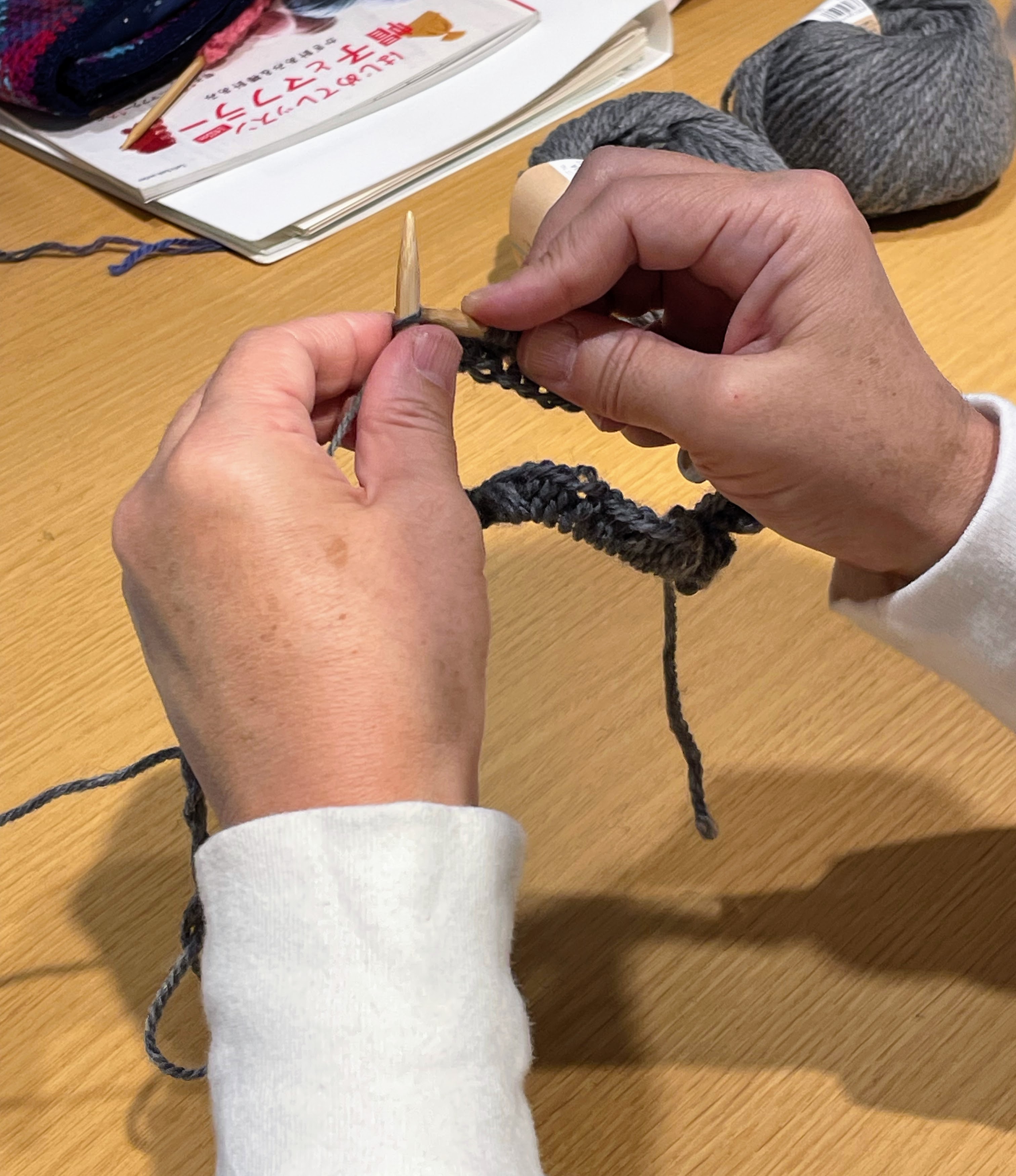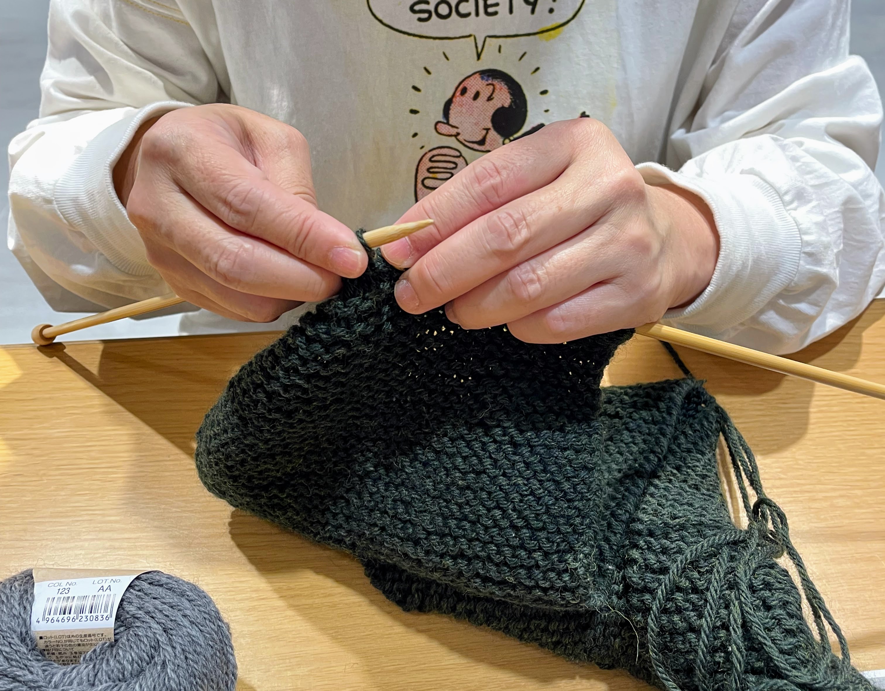 メリヤス編みの帽子を輪針で編んでいただくことに。