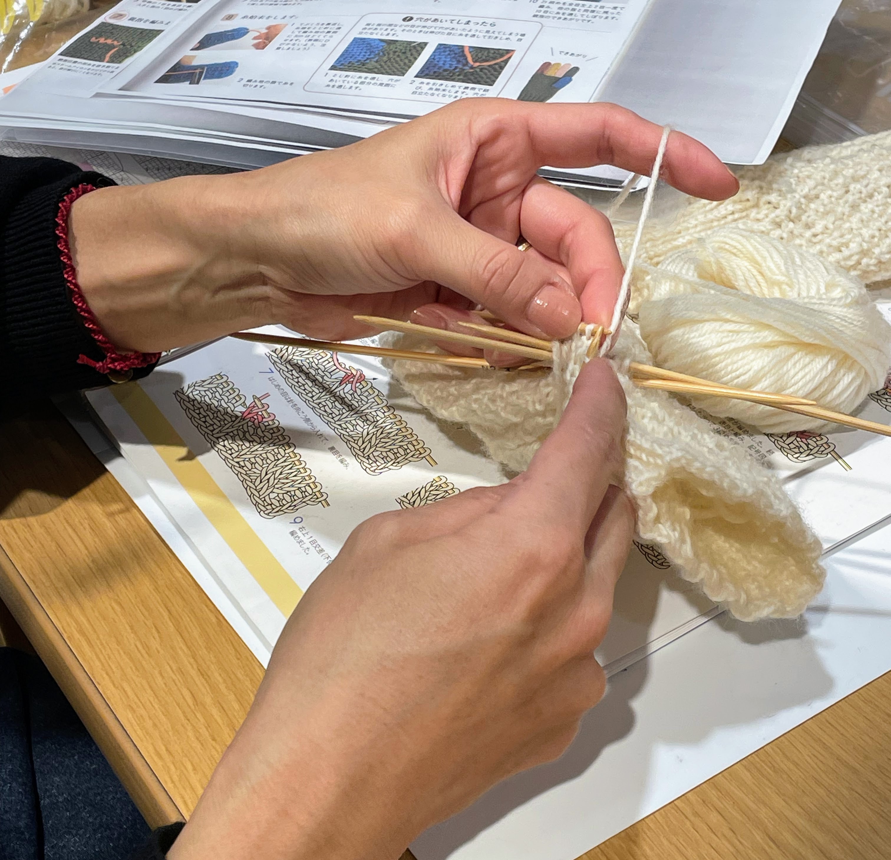現在小物課題のハンドウォーマーを編んでいらっしゃるのですが