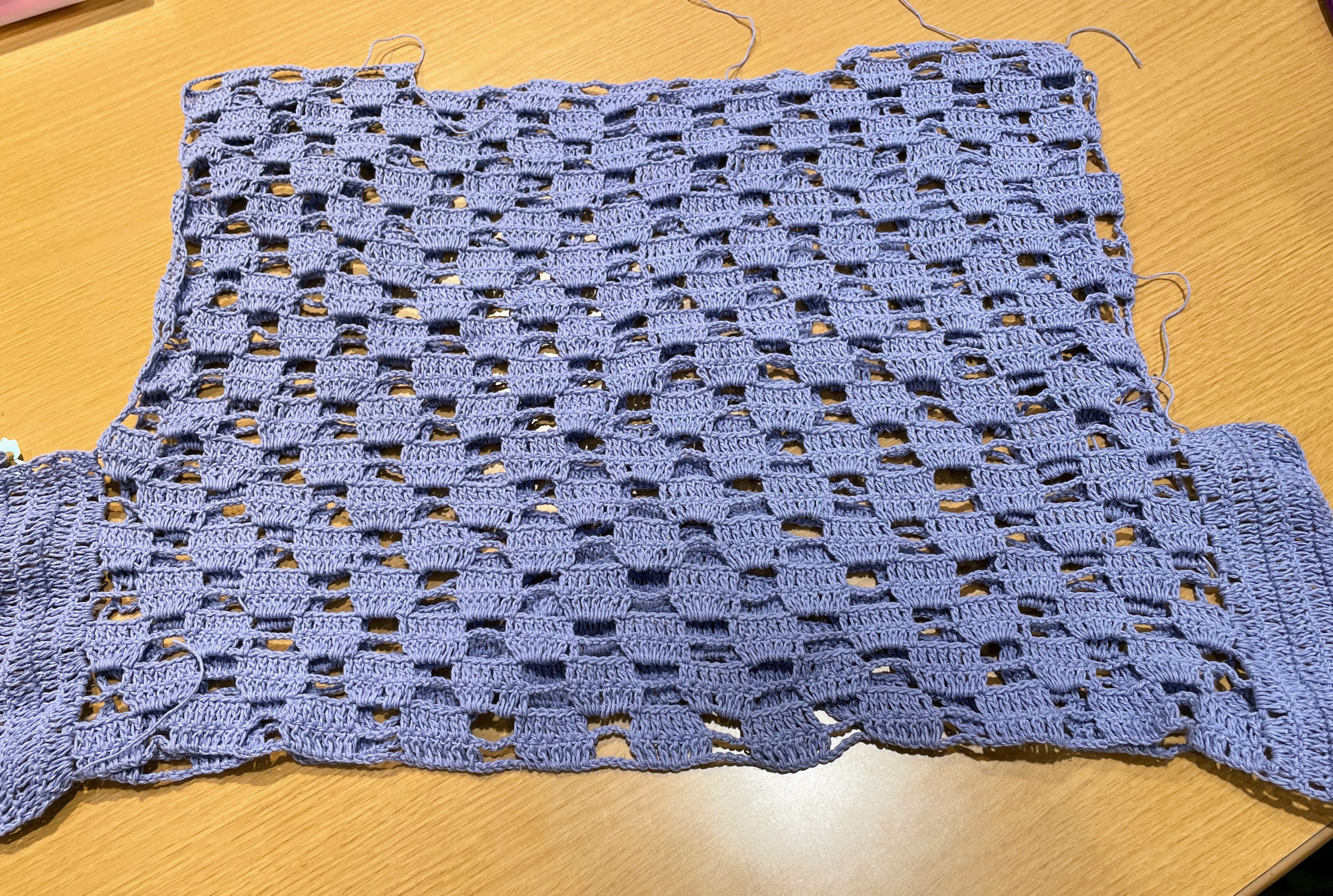 両身頃をほぼ編み上げた状態でお持ちくださいました。