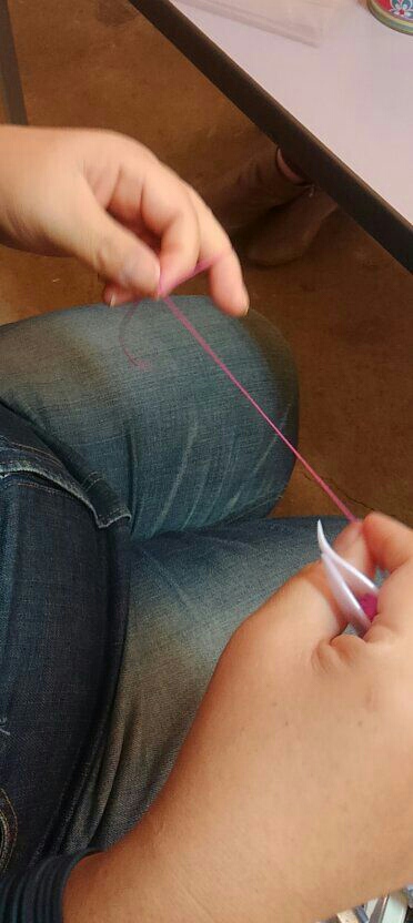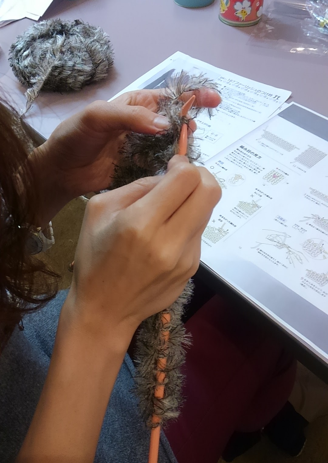 まずは普通の毛糸で基本の編み方を練習していただいたのですが、